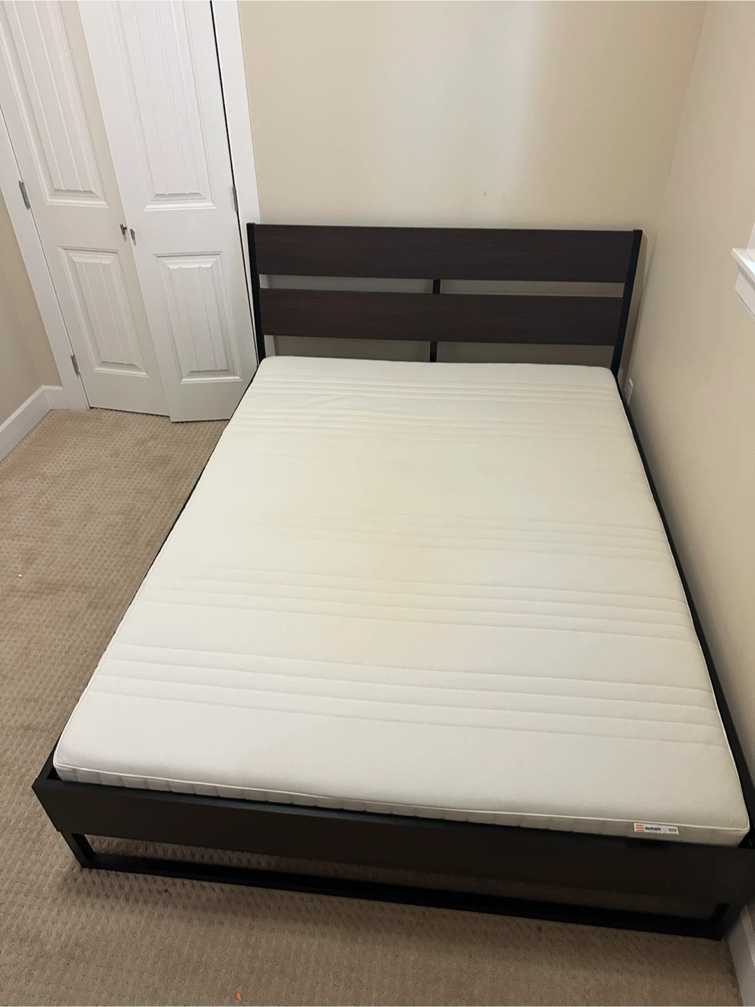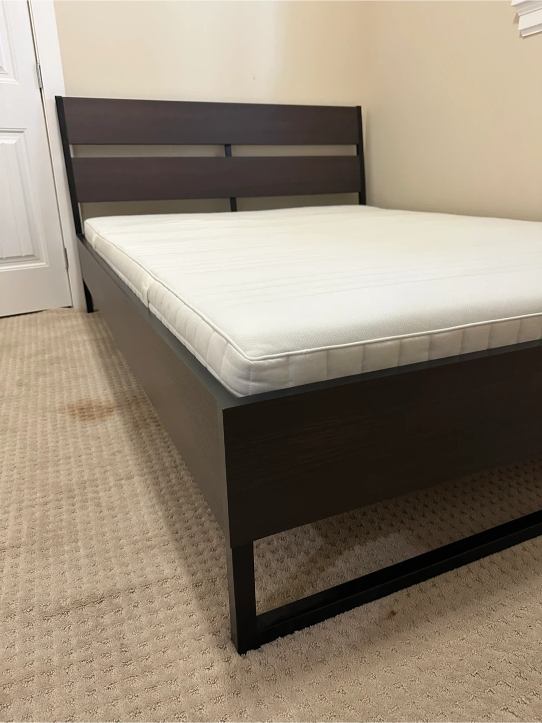 Ikea Queen size bed frame ! Very clean no any issues all parts is there !