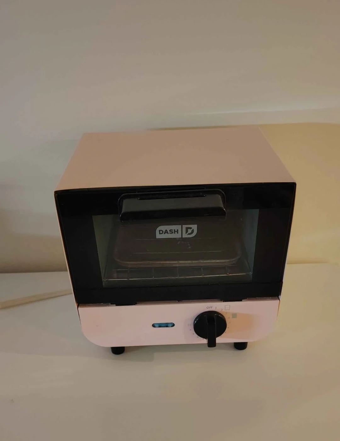 This is a pink Dash mini toaster oven. It's compact and great for small kitchens or dorm rooms. Perfect for toasting, baking, and reheating.