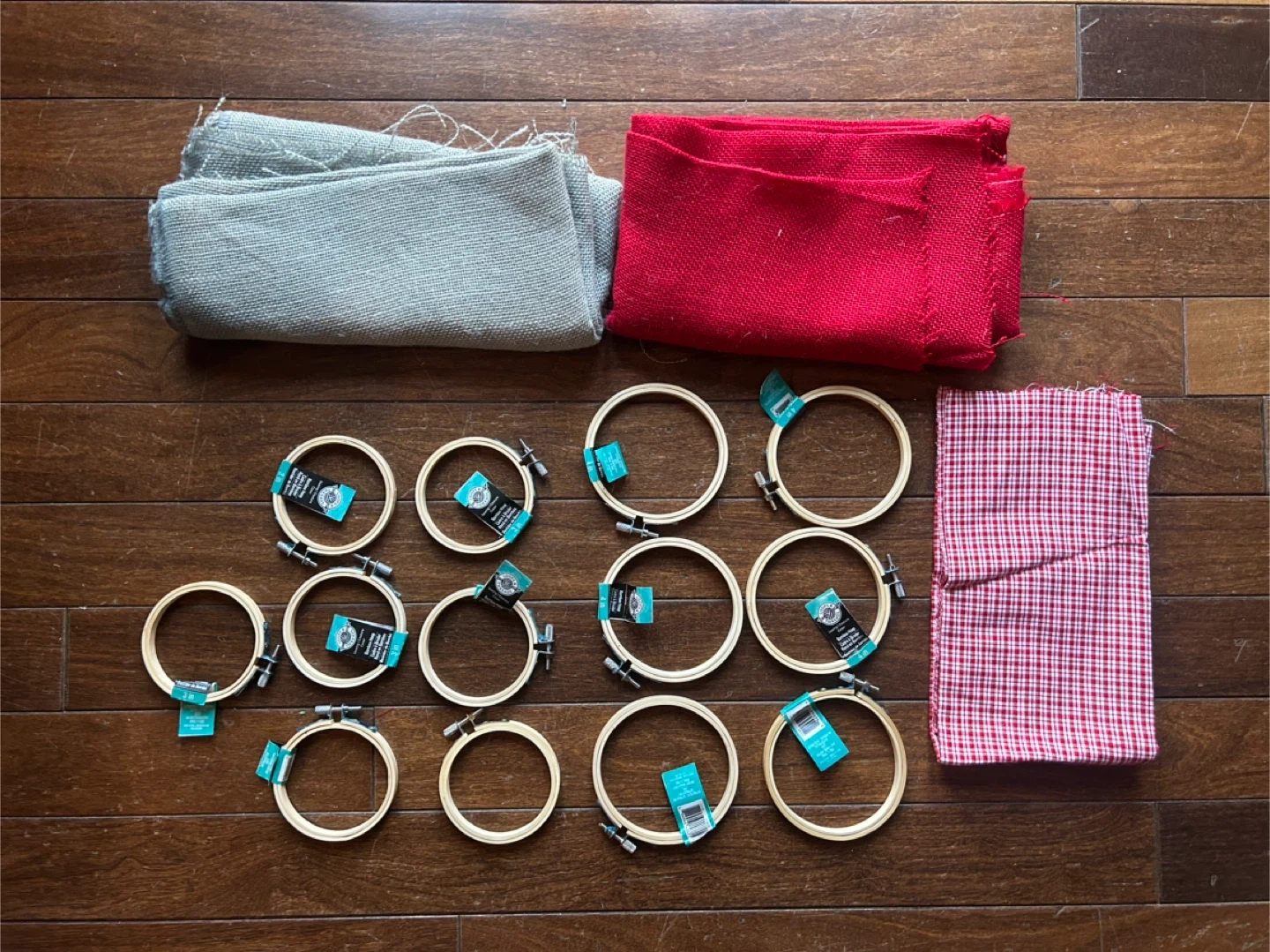 13 new bamboo craft hoops. 6 are 4inch and 7 are 3inch. Comes with fabric. Everything comes together for $10 cash only. Pick up in Sundance SE. Will hold for one day only.
