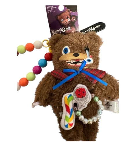 Hamikuma mascot keychain with a strap and bead details. Clip it to your tote or keys for a little theme-park cute, every day. Plush polyester body with beaded tummy accent. Strap attached for easy carry on bags, keys, or lanyards. Acrylic charm beads plus PU charm for a playful look. Lightweight and giftable for fans and collectors. Smooth handfeel; great for theme-park days or daily use. Body size: 11 × 14 × 6.5 cm (approx. 4.3 × 5.5 × 2.6 in). Total length: 30.5 cm (approx. 12.0 in). Materials: Body = polyester; Belly beads = ABS; Charm beads = acrylic; Charm = PU. Included: Mascot keychain × 1, Strap × 1.