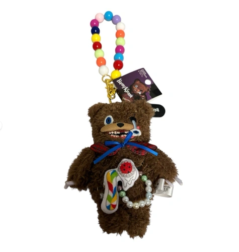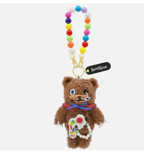Hamikuma mascot keychain with a strap and bead details. Clip it to your tote or keys for a little theme-park cute, every day. Plush polyester body with beaded tummy accent. Strap attached for easy carry on bags, keys, or lanyards. Acrylic charm beads plus PU charm for a playful look. Lightweight and giftable for fans and collectors. Smooth handfeel; great for theme-park days or daily use. Body size: 11 × 14 × 6.5 cm (approx. 4.3 × 5.5 × 2.6 in). Total length: 30.5 cm (approx. 12.0 in). Materials: Body = polyester; Belly beads = ABS; Charm beads = acrylic; Charm = PU. Included: Mascot keychain × 1, Strap × 1.