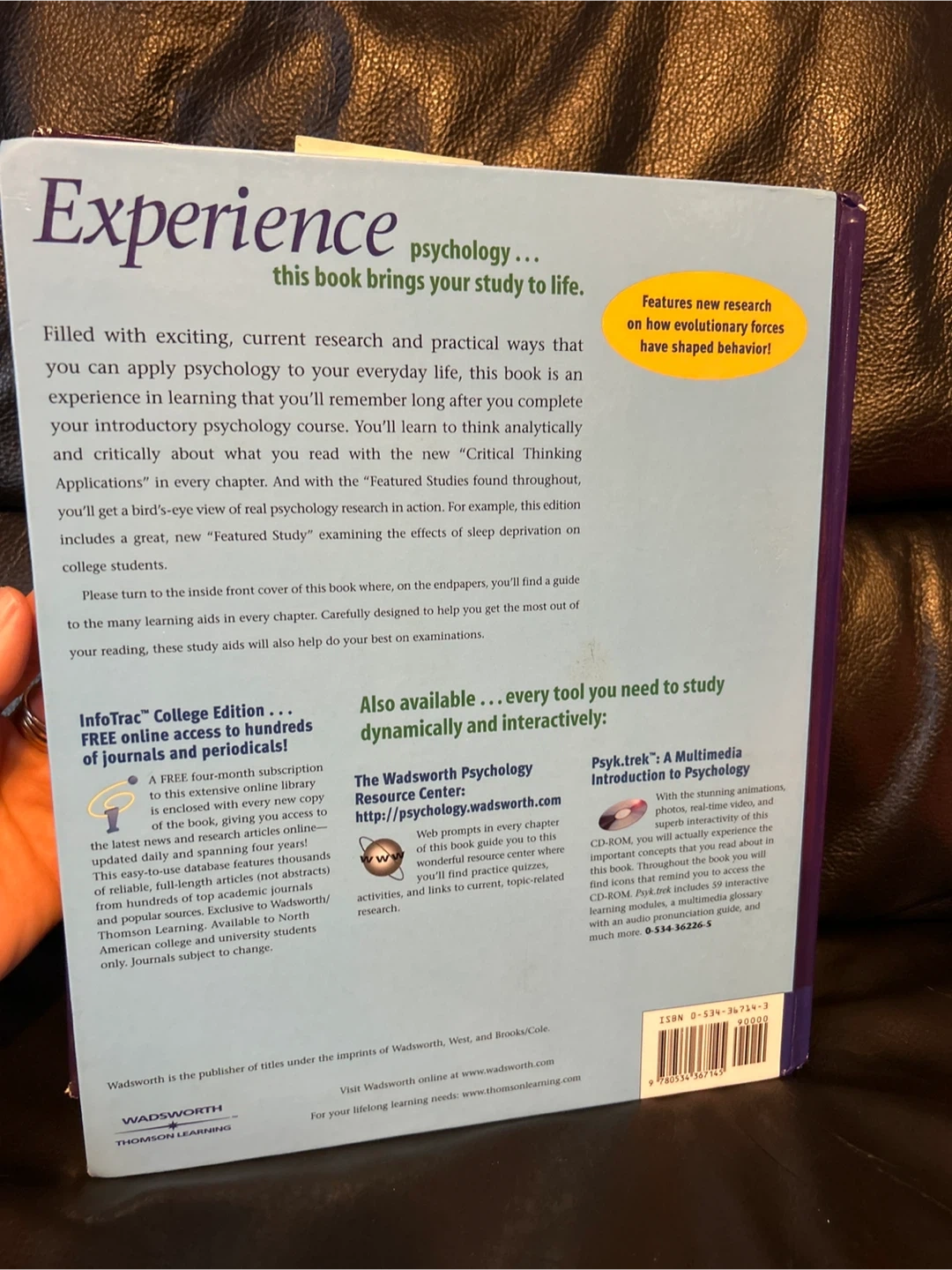 Psychology: Themes & Variations, Fifth Edition textbook by Wayne Weiten. This book brings psychology to your study life. It covers experience and psychology, and features new research on how evolutionary shapes have shaped behaviour.