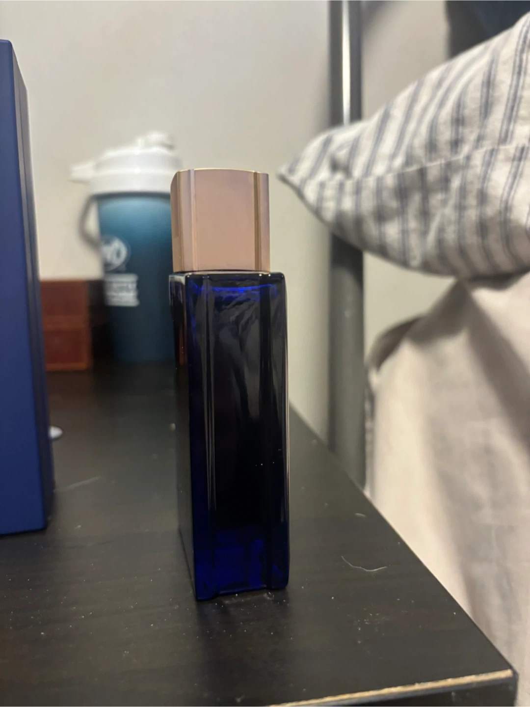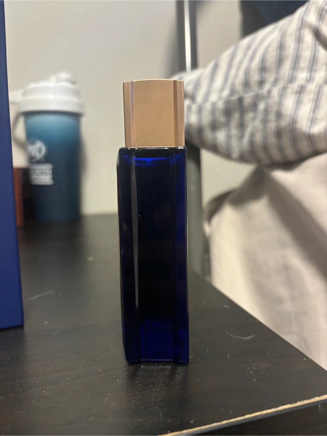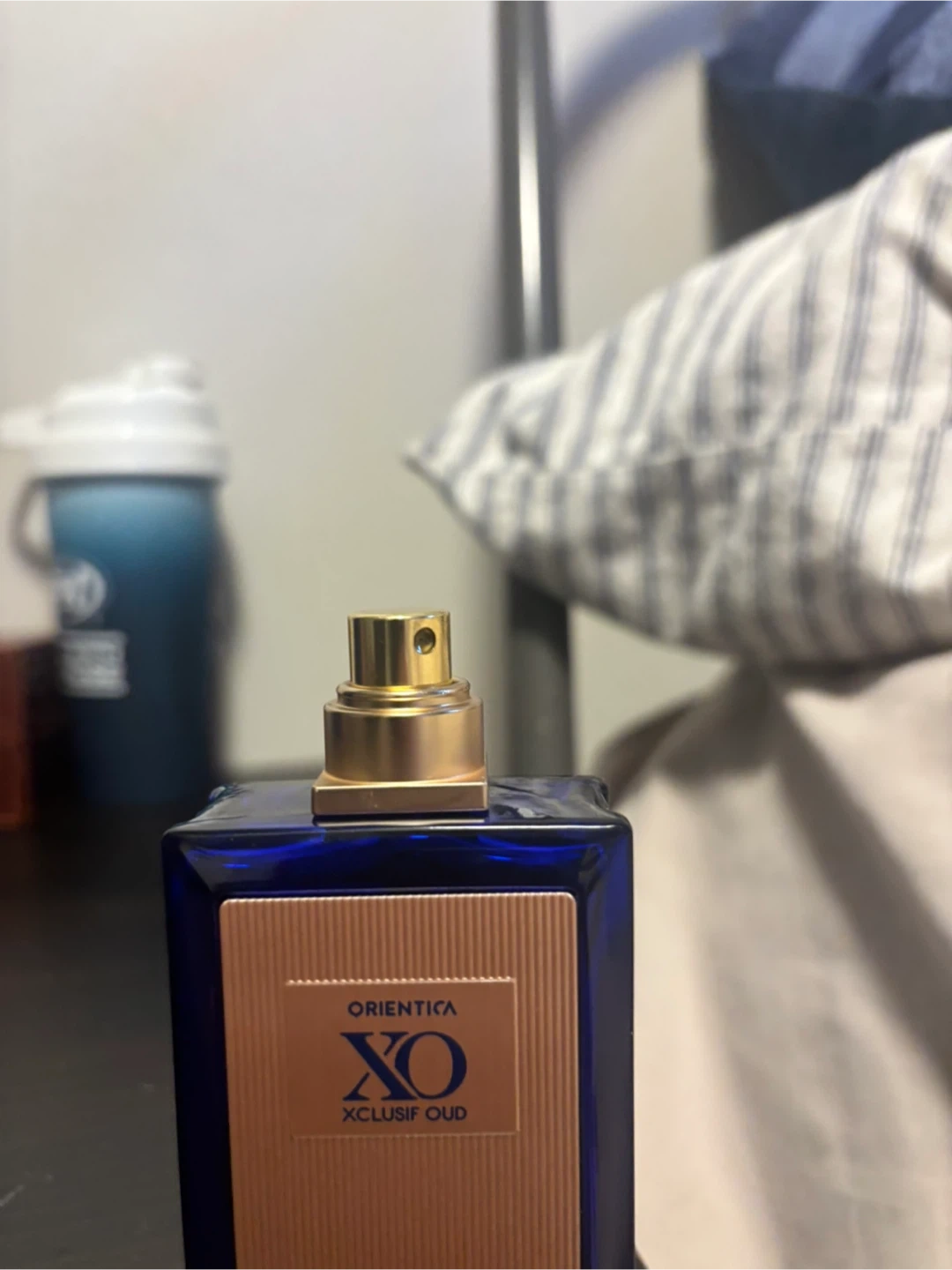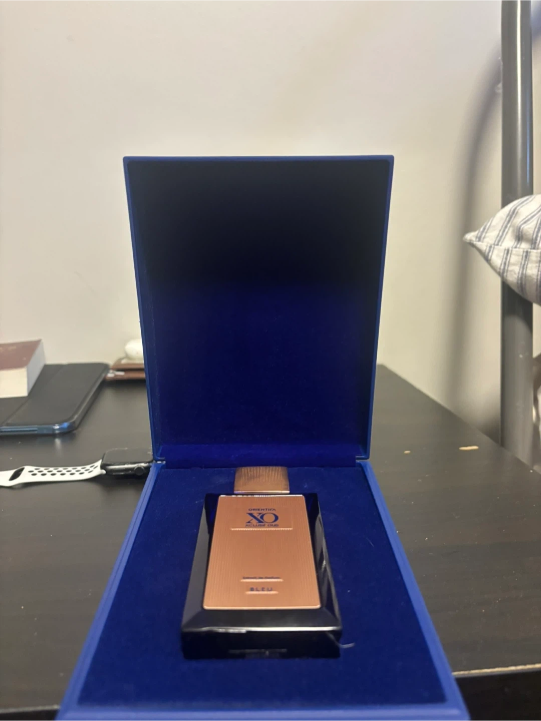 Orientica XO Xclusif Oud Bleu Extrait de Parfum in a blue glass bottle. It's a concentrated fragrance. Comes with its original box.