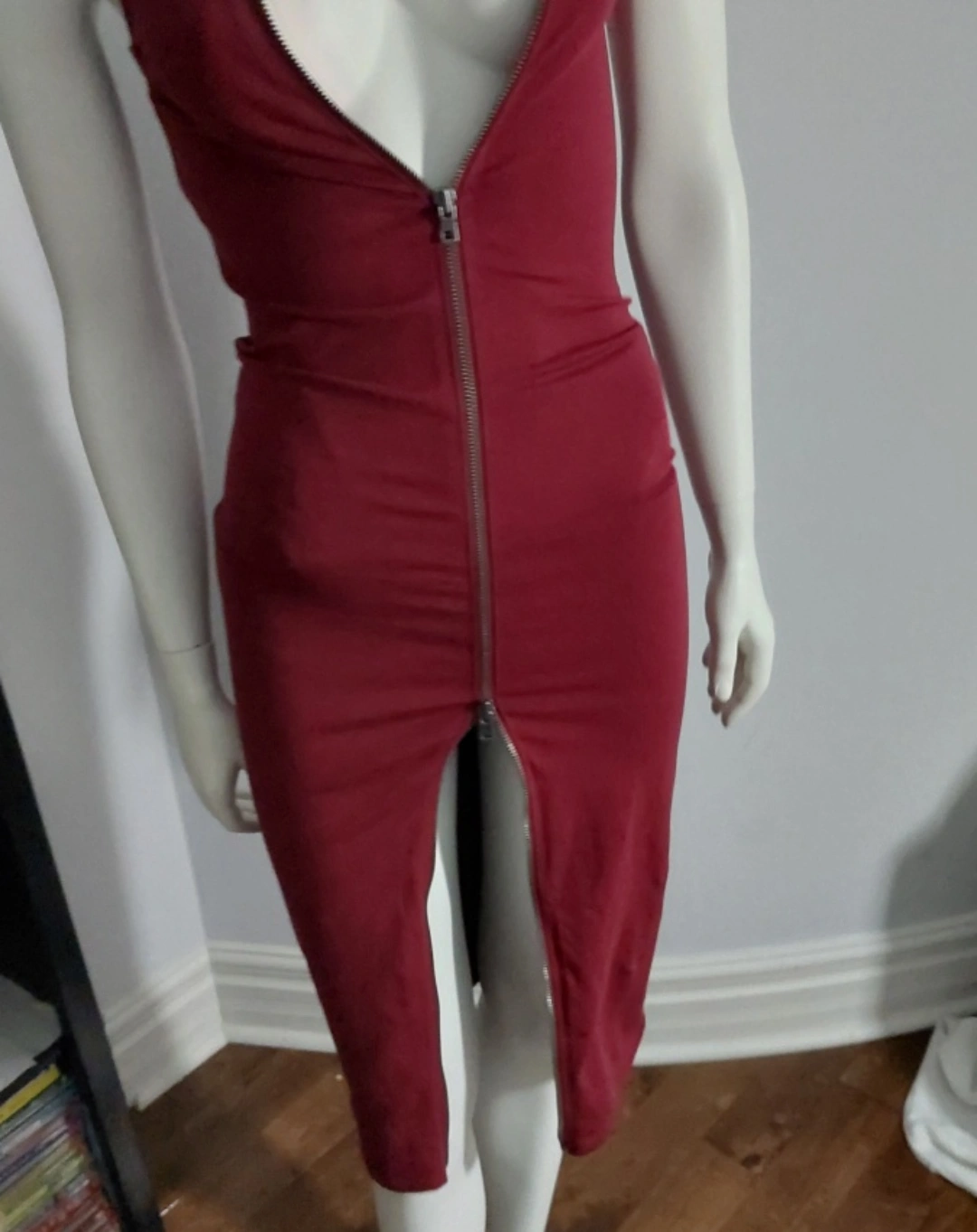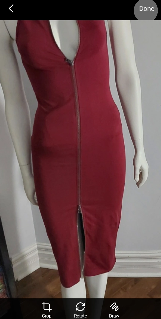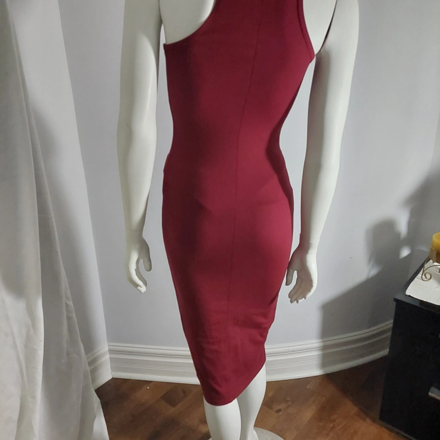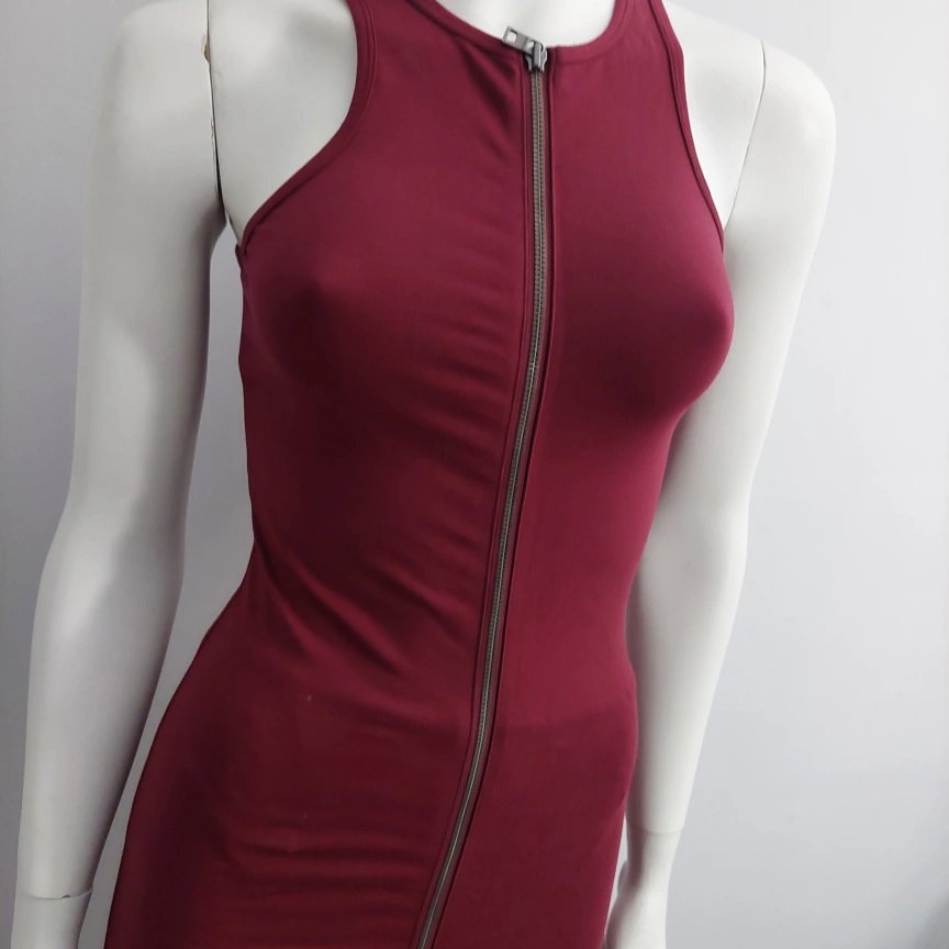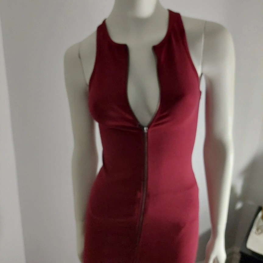 A stylish burgundy dress featuring a unique zipper front design! It's in excellent condition! Perfect for a night out or a special occasion. The dress has a flattering silhouette and the zipper adds a touch of edginess.New without tag