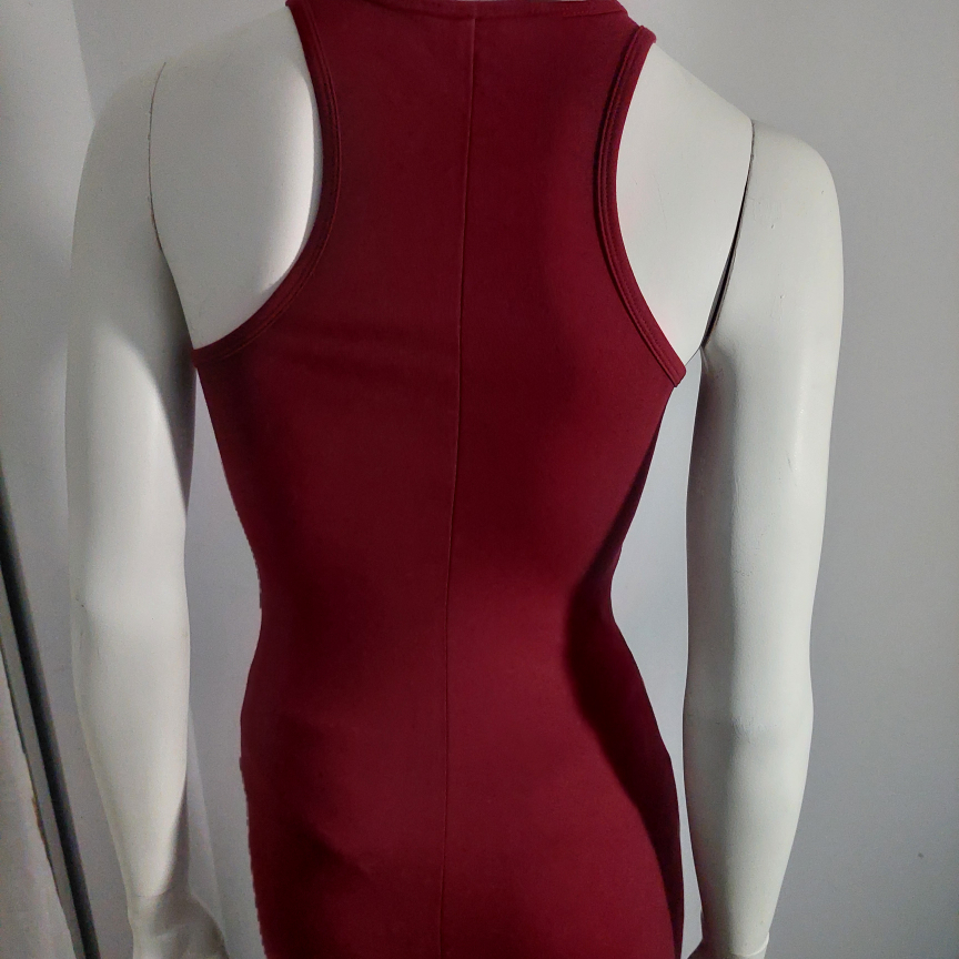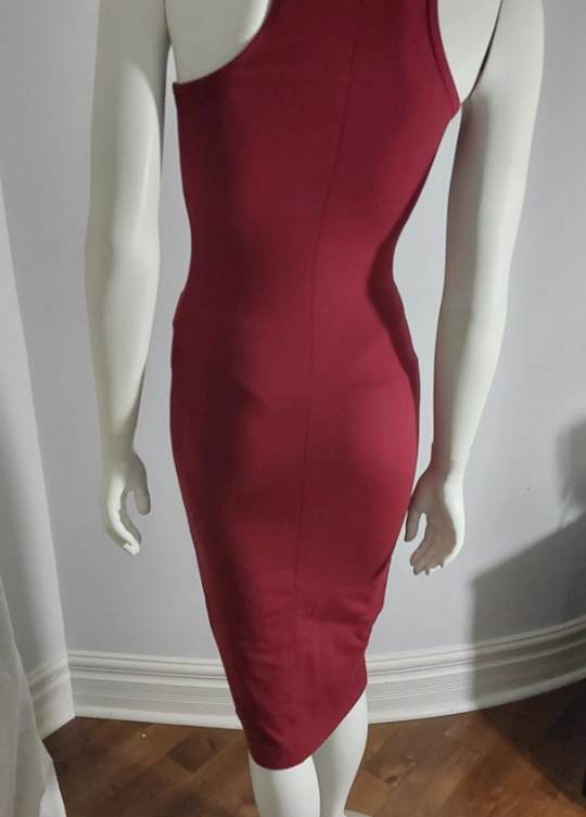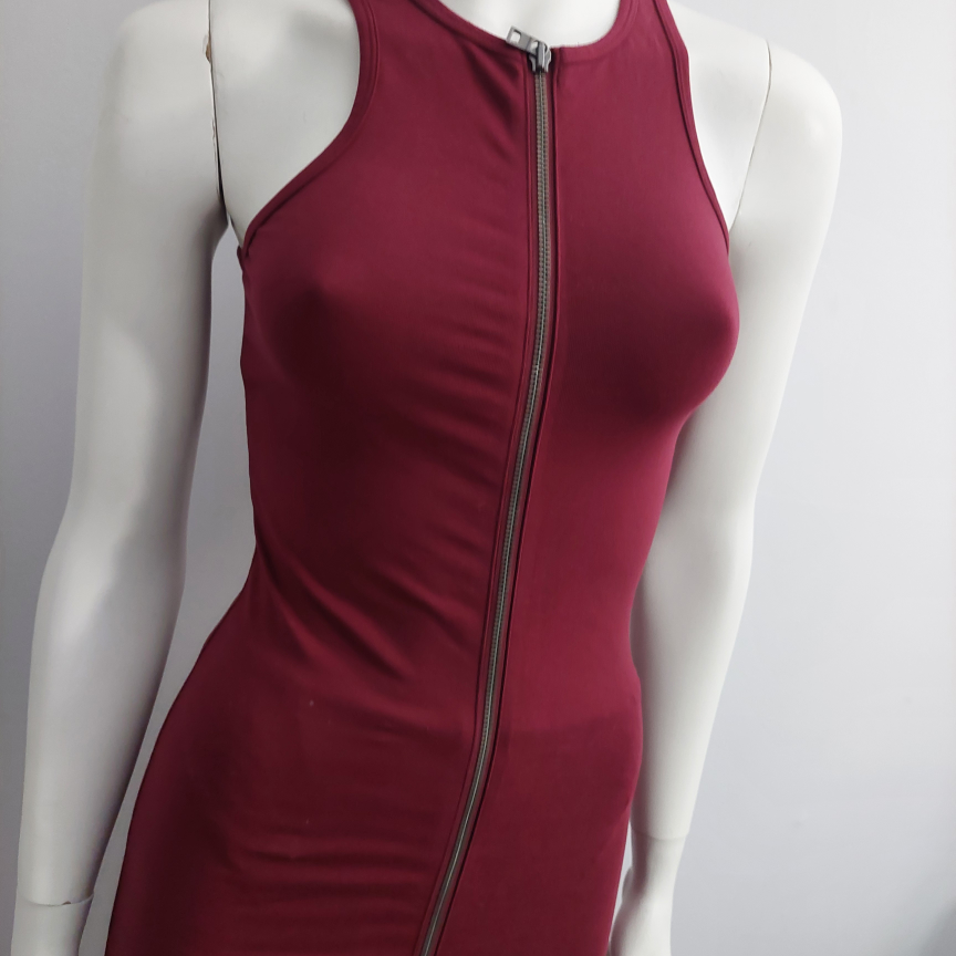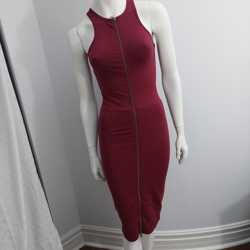 A stylish burgundy dress featuring a unique zipper front design! It's in excellent condition! Perfect for a night out or a special occasion. The dress has a flattering silhouette and the zipper adds a touch of edginess.New without tag