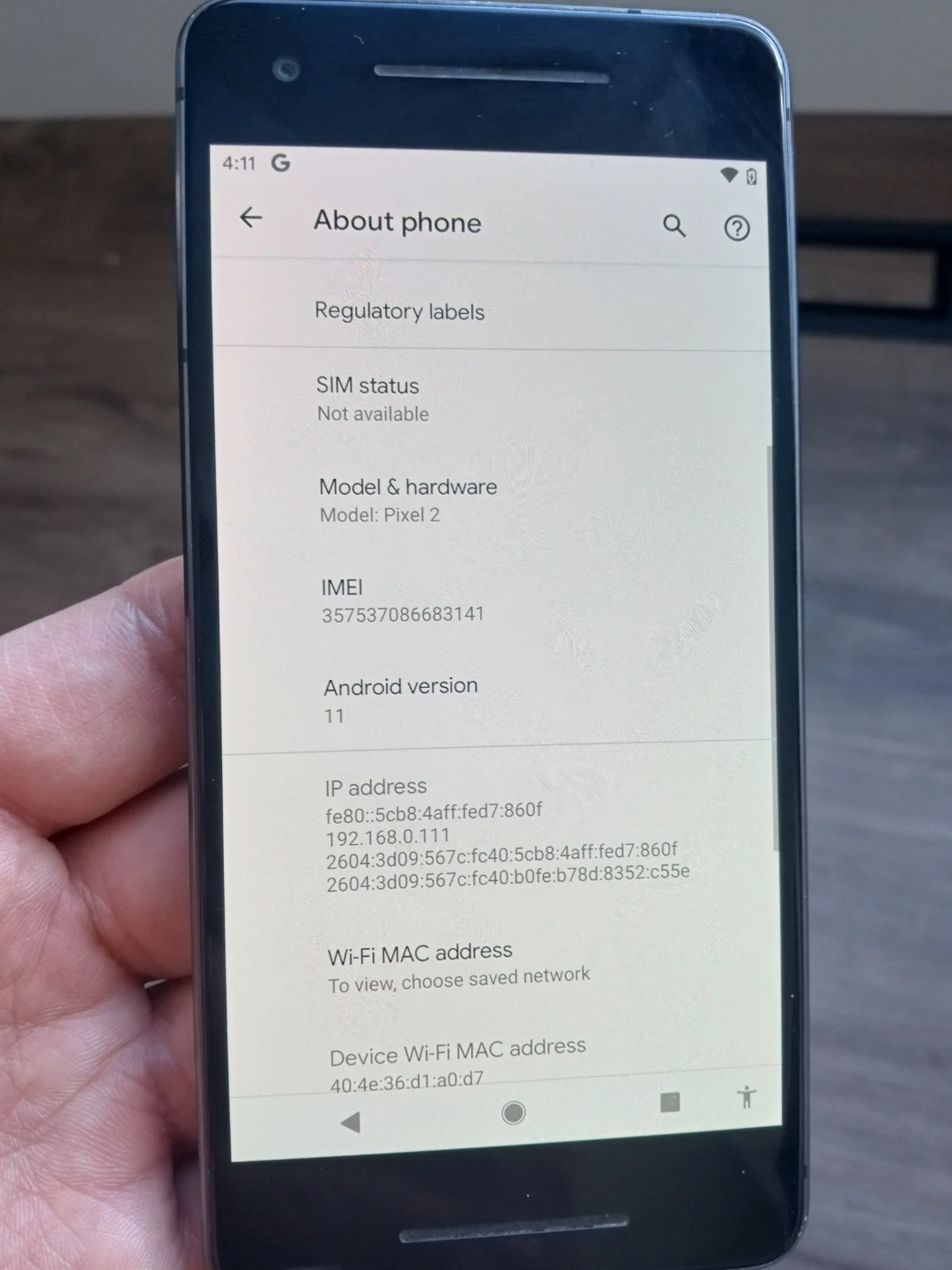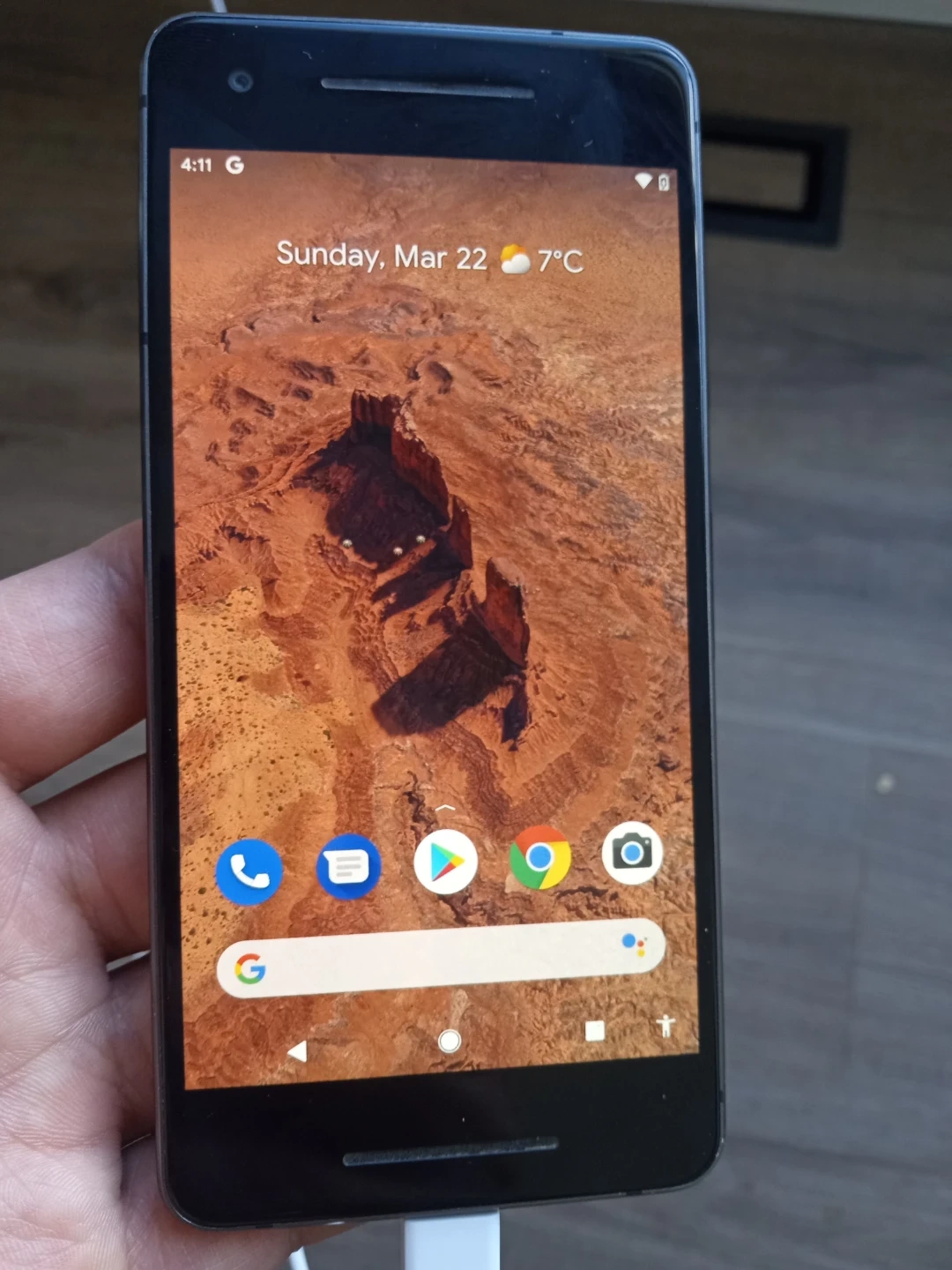 Google Pixel 2 smartphone. Runs on Android version 11. Features 64GB of storage.