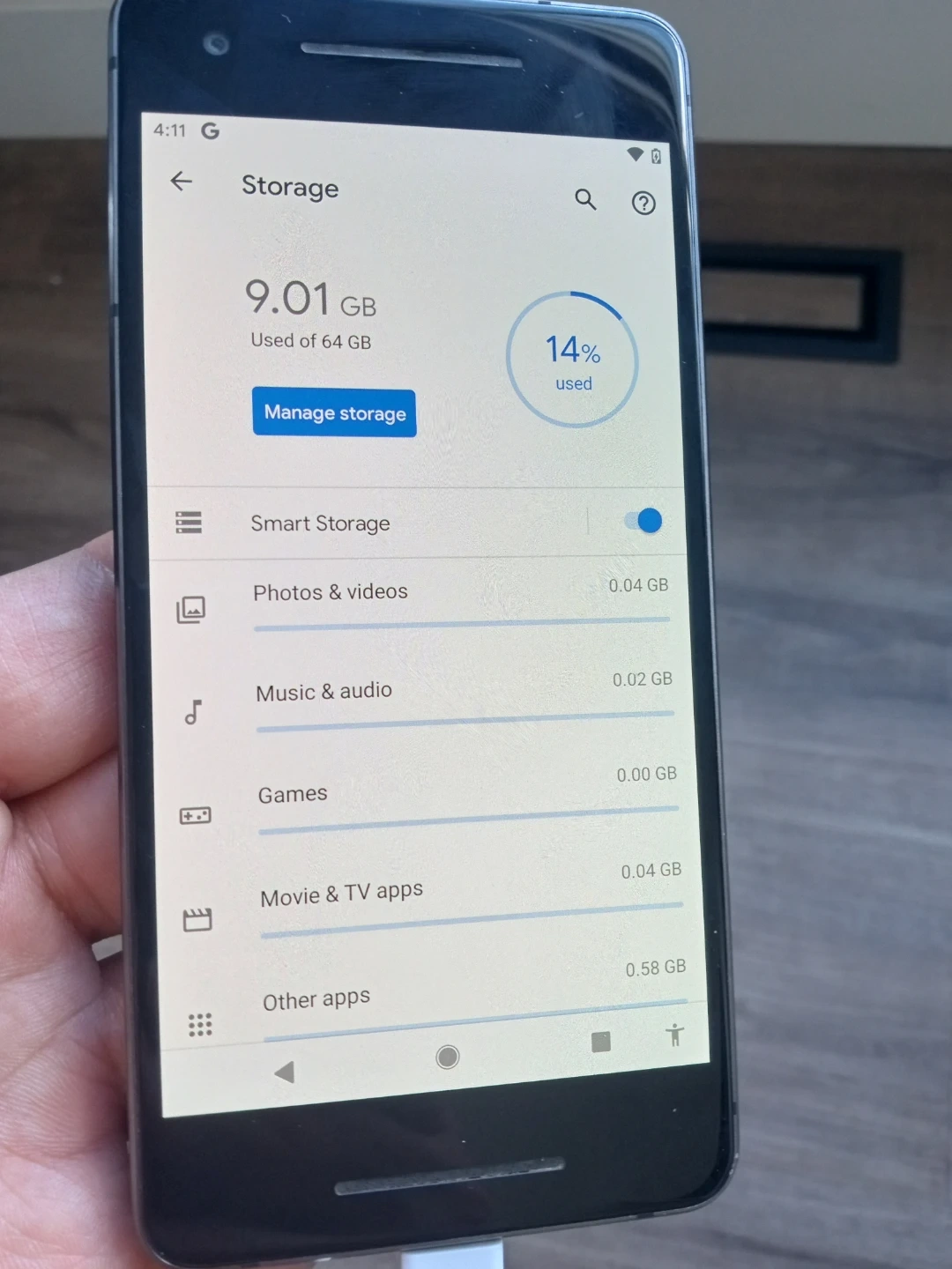 Google Pixel 2 smartphone. Runs on Android version 11. Features 64GB of storage.