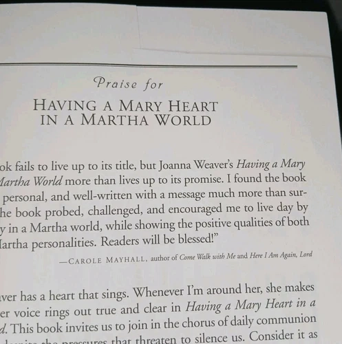 This book, "Having a Mary Heart in a Martha World : Finding Intimacy with God in the Busyness of Life" by Joanna Weaver, offers a compelling perspective on balancing spirituality and daily responsibilities. With a focus on biblical teachings and personal growth, the author presents a thought-provoking exploration of faith and relationship with God. Ideal for adults seeking spiritual inspiration and guidance, this nonfiction book is a valuable addition to any library focused on Bible studies and religion. There is highlight, writing, one part of the page is cut (no text missing) see picture for details.