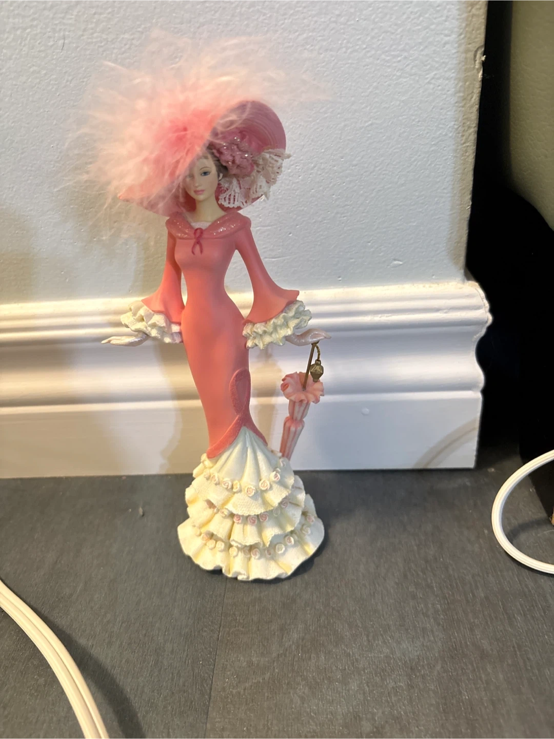 This Thomas Kinkade Inspirations of Hope Collection figurine is titled "A Vision of Hope." It features a lady in a pink dress with a feathered hat and a small umbrella. Limited to 95 casting days. Buy this and pick anything you want in my other ads and I’ll give it to you for free.