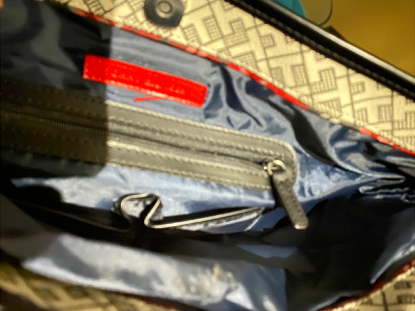 This is a classic Tommy Hilfiger tote bag. It features the signature Tommy Hilfiger monogram pattern. The interior has a zippered pocket for secure storage. This bag is perfect for everyday use!