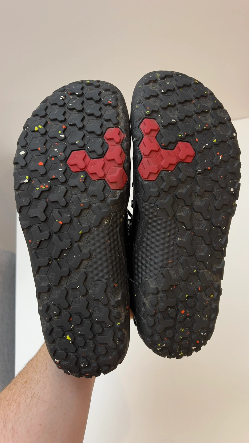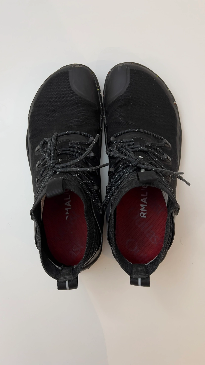 Black Barefoot shoes size 43M (EU) or 10 (US) with a black and white speckled laces. Nice solid laces and a bit of stretch.