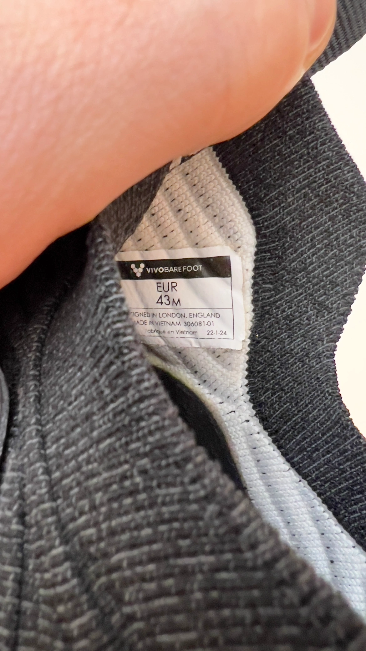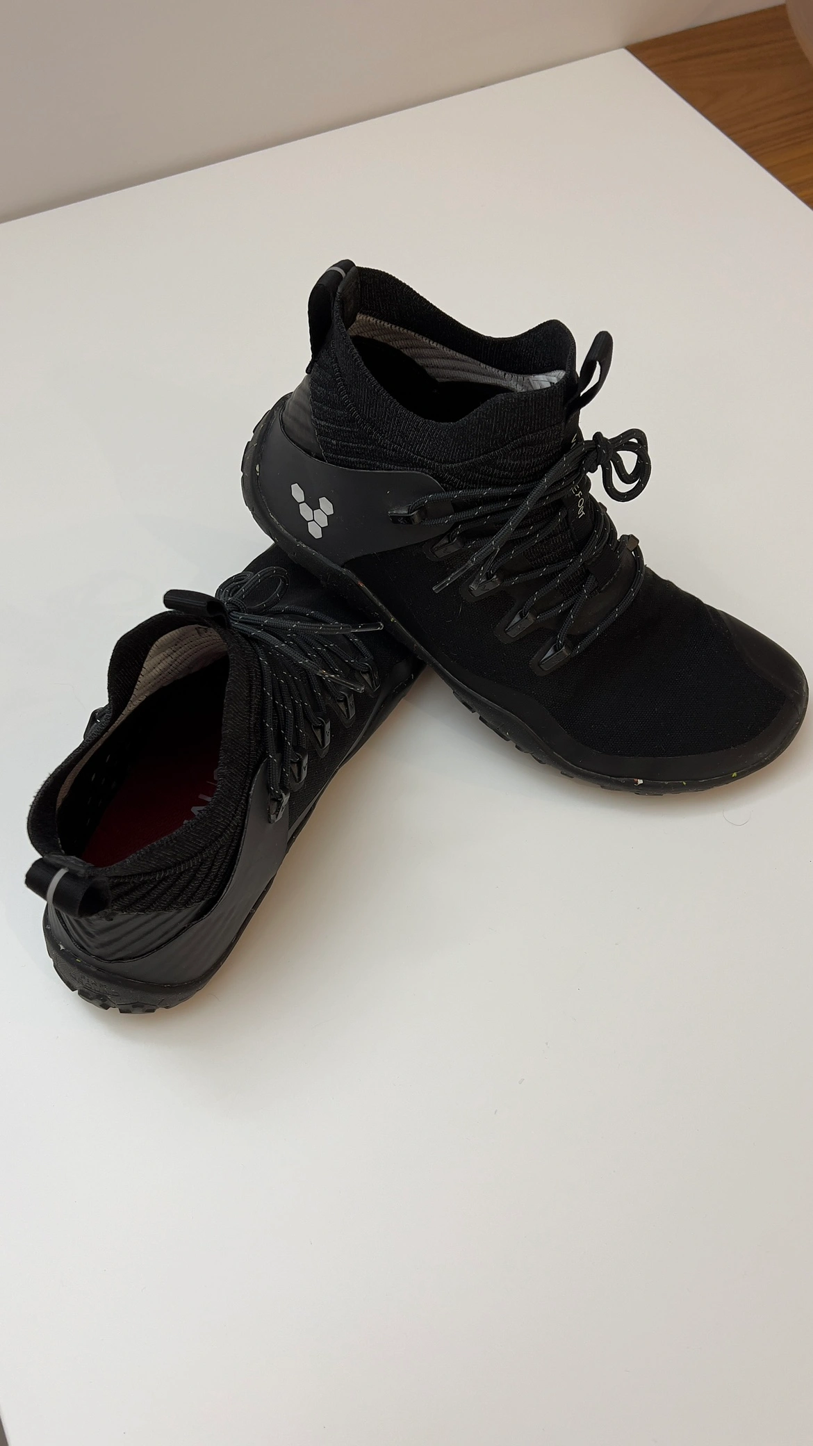 Black Barefoot shoes size 43M (EU) or 10 (US) with a black and white speckled laces. Nice solid laces and a bit of stretch.