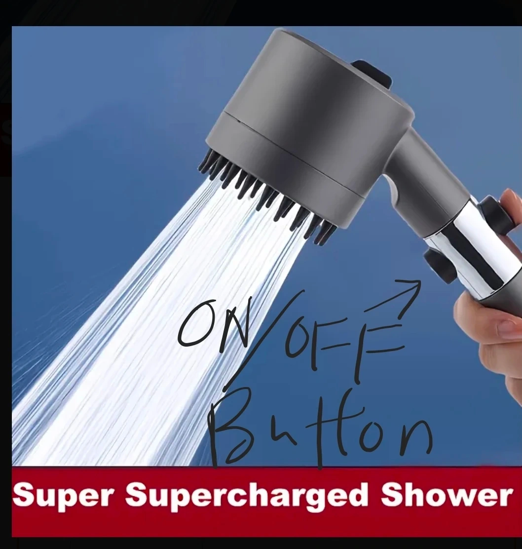 High Pressure Shower Head, ON OFF button, w adjustable Water Pressure, Massage Silicon, Water Saving