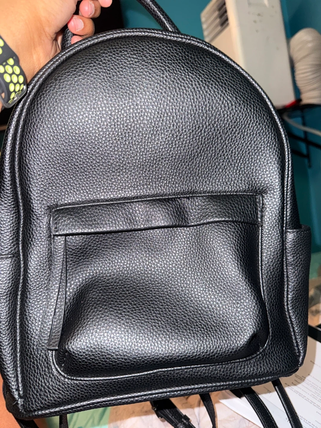 Selling a cute black mini backpack! It's in great condition and perfect for carrying essentials. The backpack features a main compartment with a zipper closure and a front pocket for easy access to smaller items. The straps are adjustable for a comfortable fit