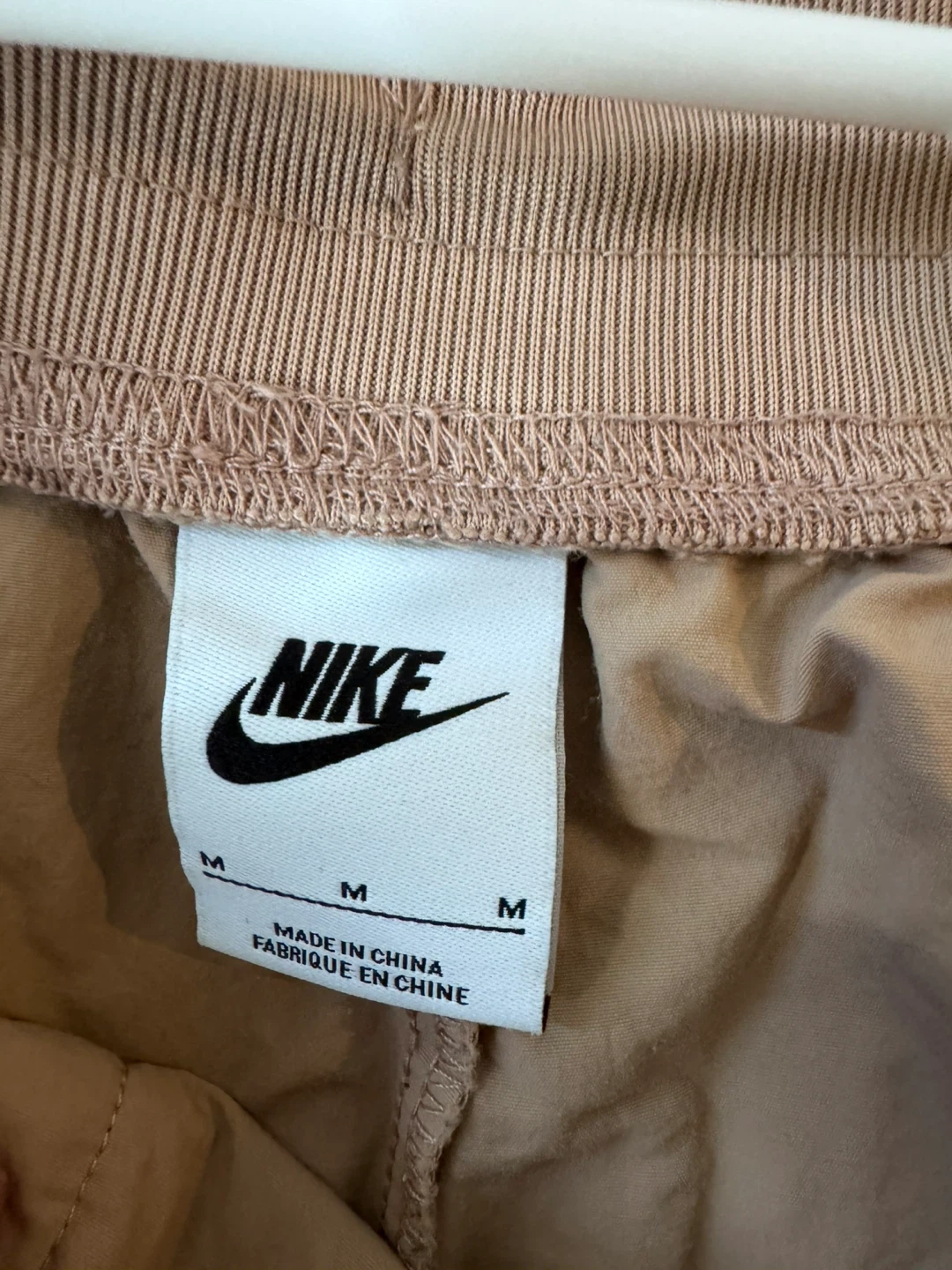 These Nike joggers are size medium and feature a light pink colour. They're made with a durable fabric and have a comfortable elastic waistband. These pants are perfect for casual wear or light athletic activities.