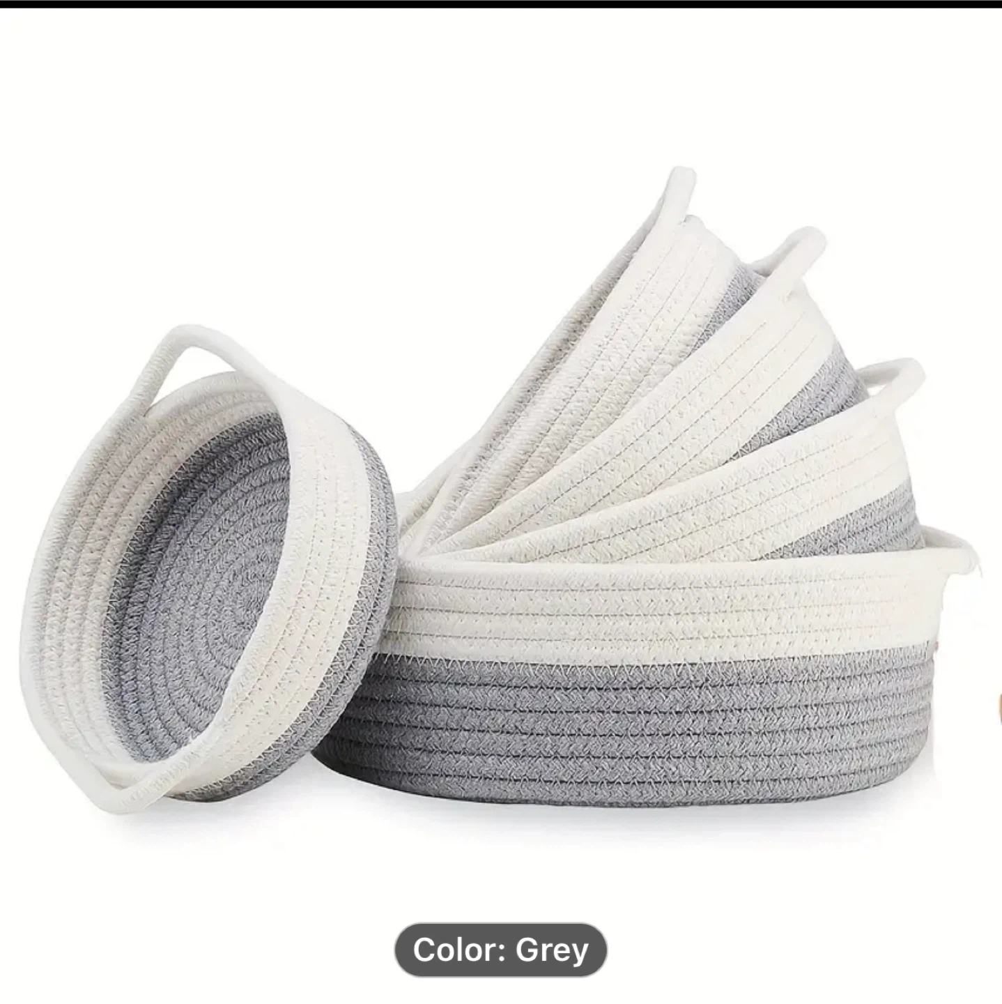 Set of 5 Grey & White Cotton Rope Baskets