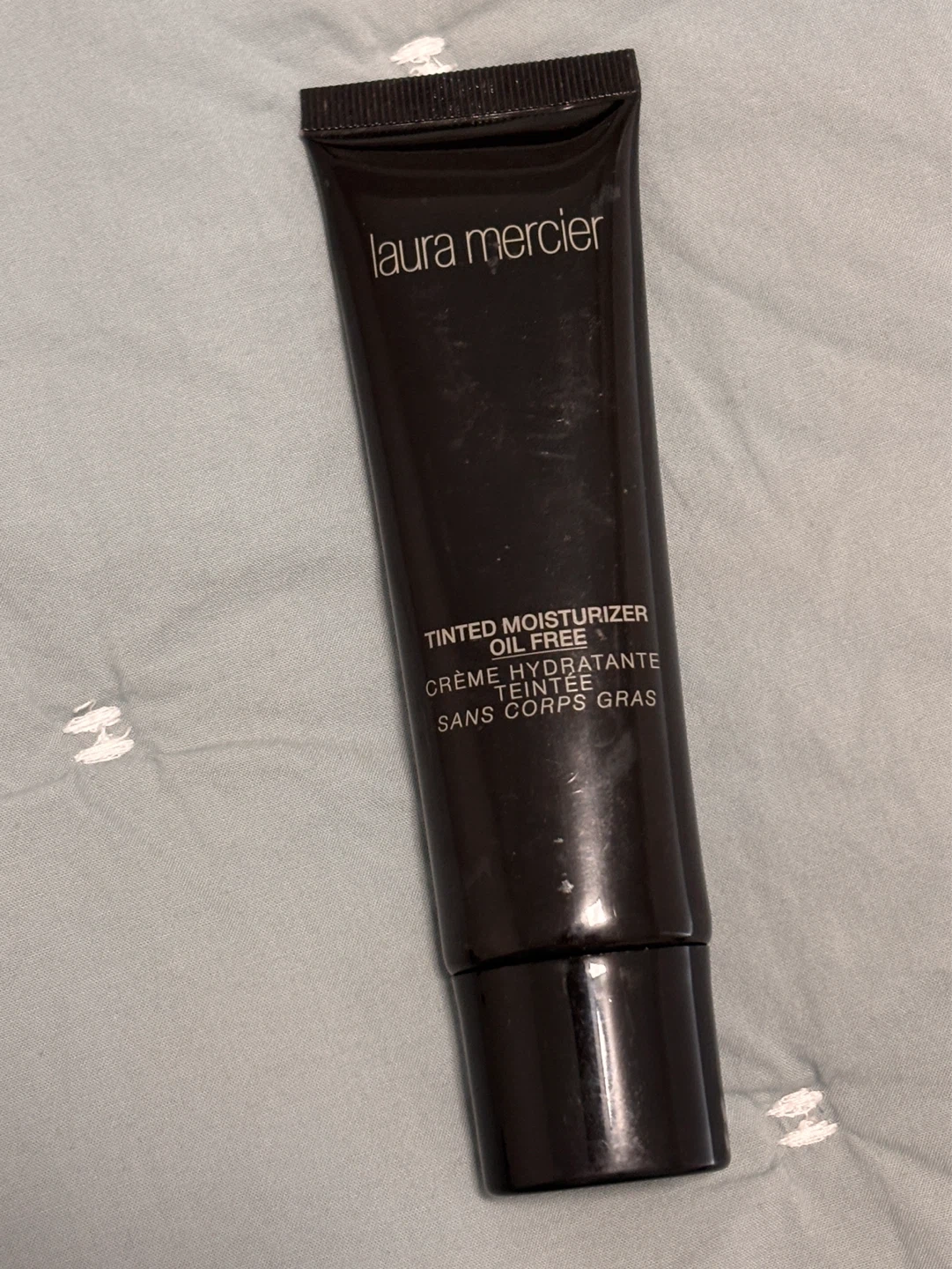 Laura Mercier Tinted Moisturizer Oil Free in shade 5W1 Tan. This lightweight formula helps control oil breakthrough and gives a sheer hint of colour for a healthy, natural glow. Suitable for oily or sensitive skin types.