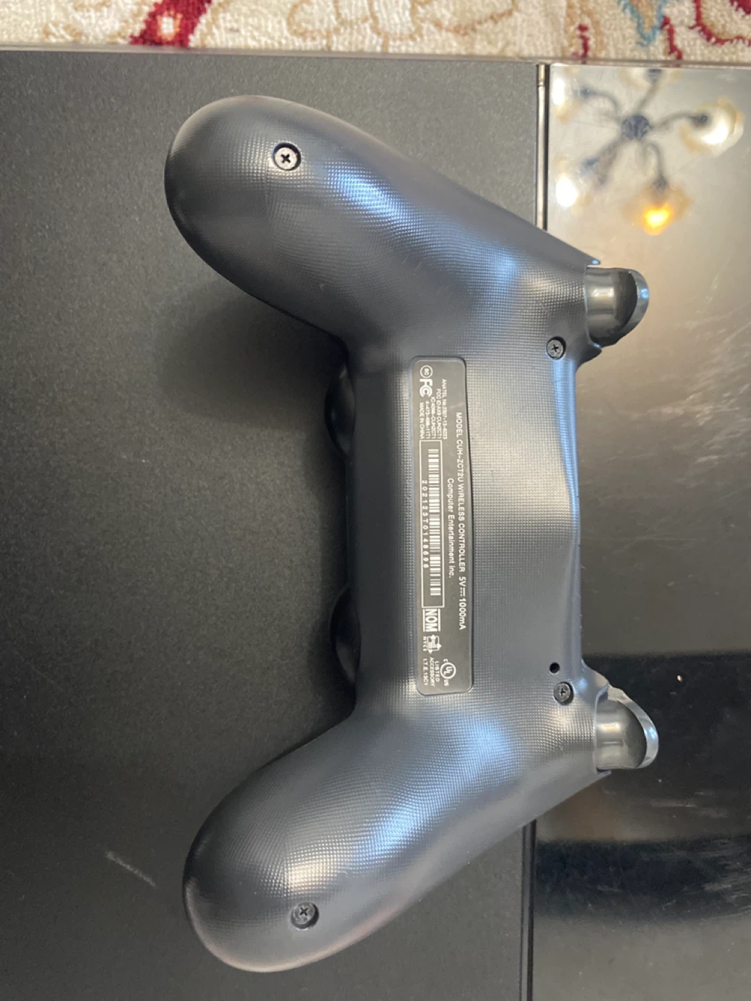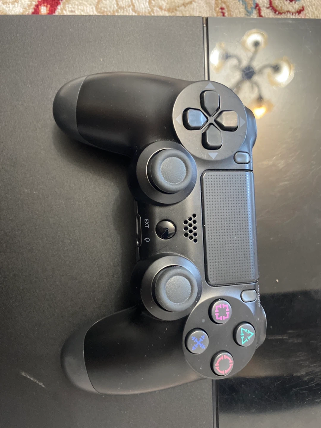 This is a black wireless controller for PlayStation 4. It features analog sticks, a D-pad, and face buttons for gaming. Compatible with PS4 consoles.