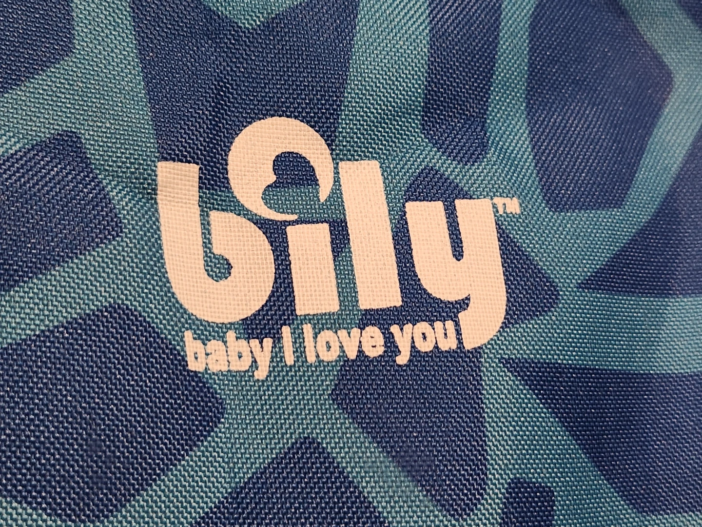 Bily Umbrella Stroller, specifically a variation of the "Geo Splash" or a similar pattern in blue. This model is a popular, lightweight, and compact stroller option.