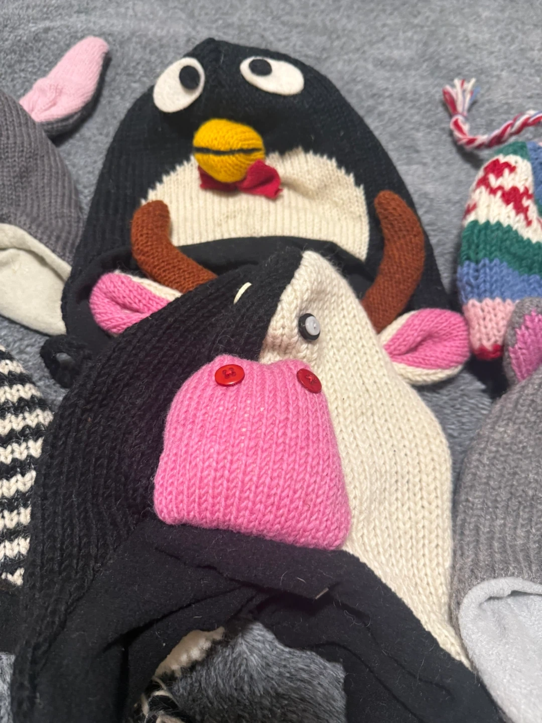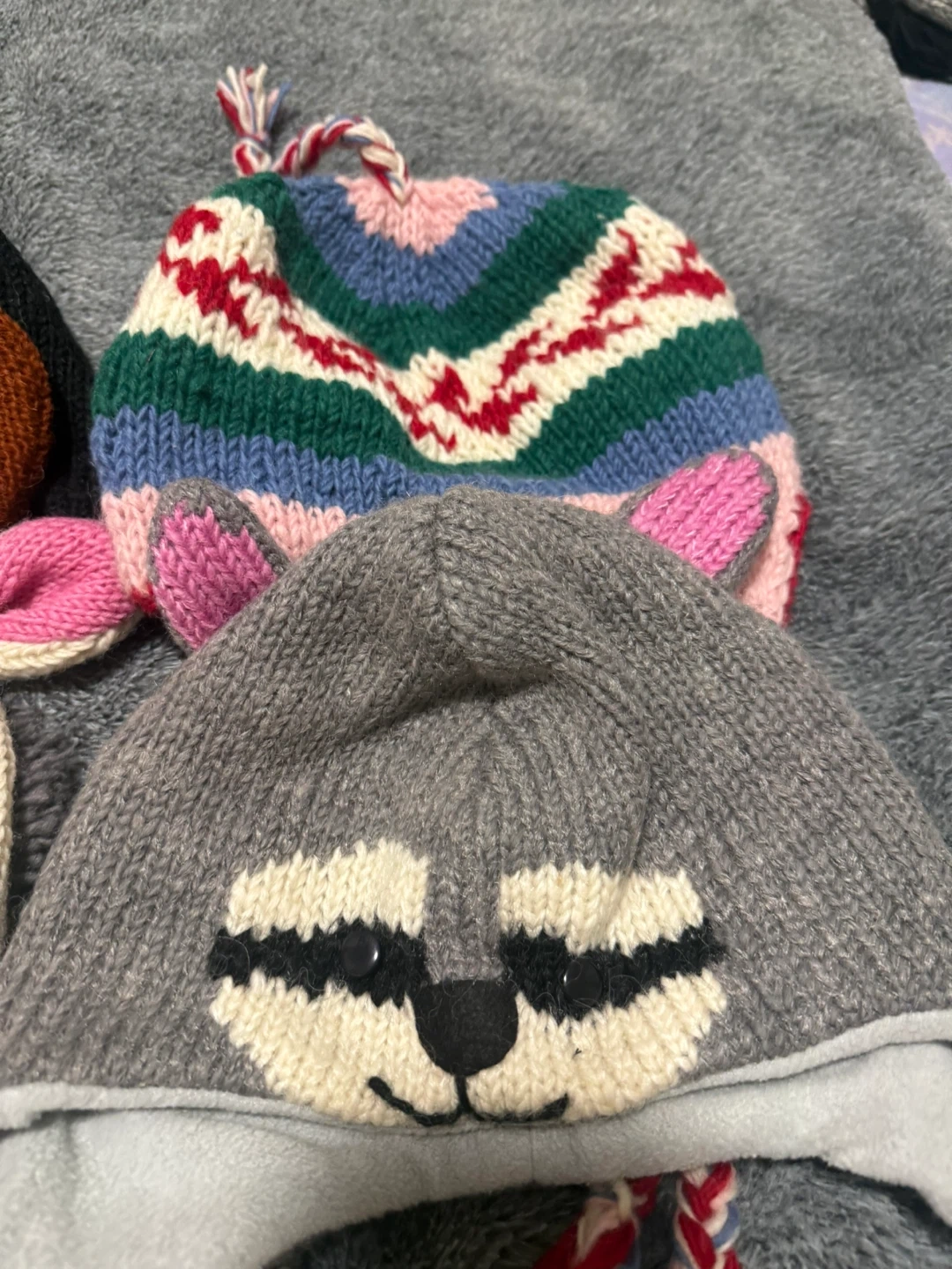 Sale on these last few pieces of winter caps with fleece inside! Beautiful and fun animal designs! Stay warm and stylish at the same time!