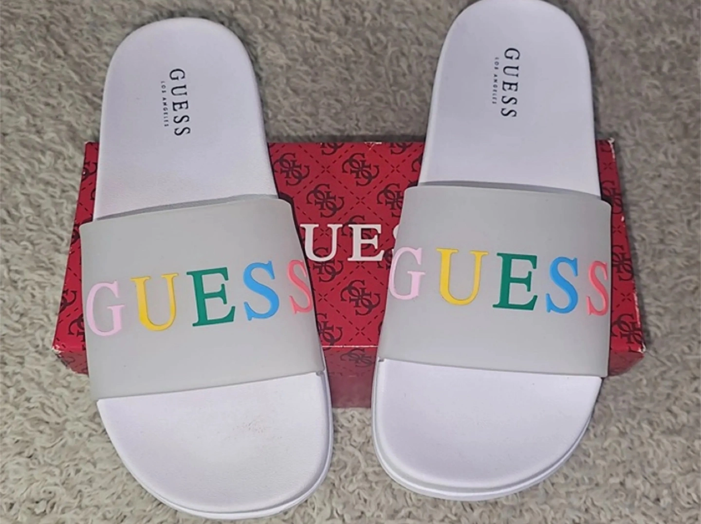 Cute pair of GUESS Los Angeles slides in white! These are in great condition and come with the original box
