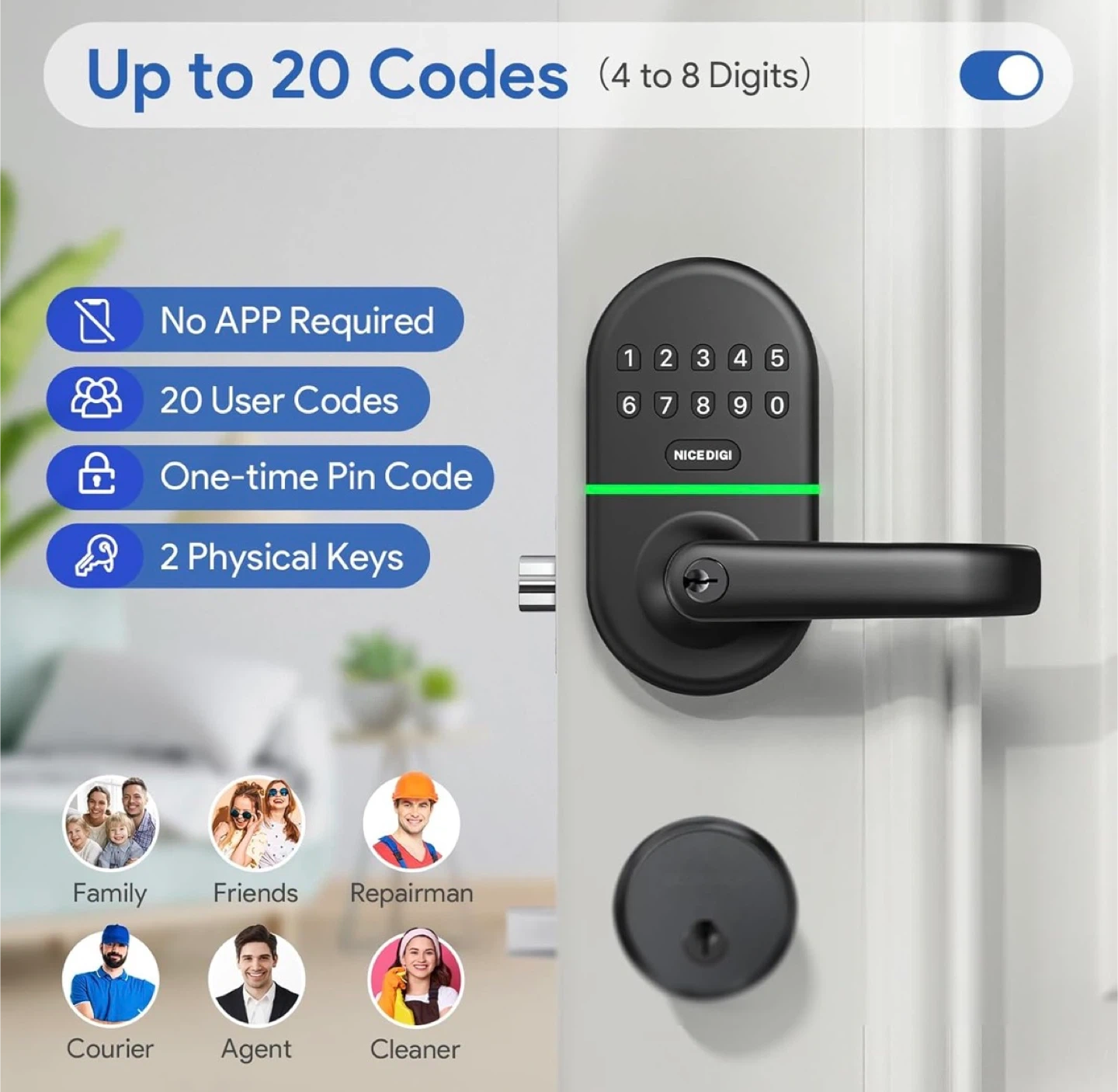Buy & SellNICE DIGI Smart Door Lock with HandleNICE DIGI Smart Door Lock with Handle$50Smart Keypad Door Lock with Handle: Keyless Entry for Front Door by NICE DIGI,ConditionNewWHERE TO MEETCheck LocationView MapSELLERRuiParkview E181 review1 chats·1 favorites·3 viewsSEND CHAT TO SELLERHi Rui! I’m interested in your listing.Hi Rui! I’m interested in your listing.Get the Karrot app to chatSign In to chat