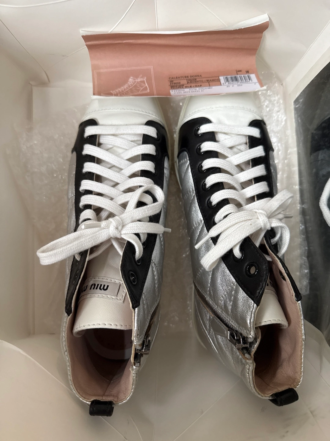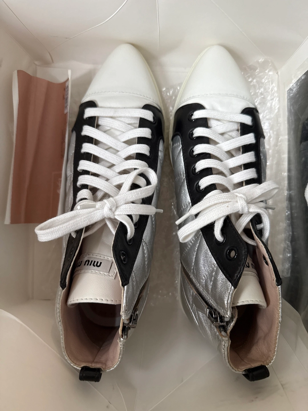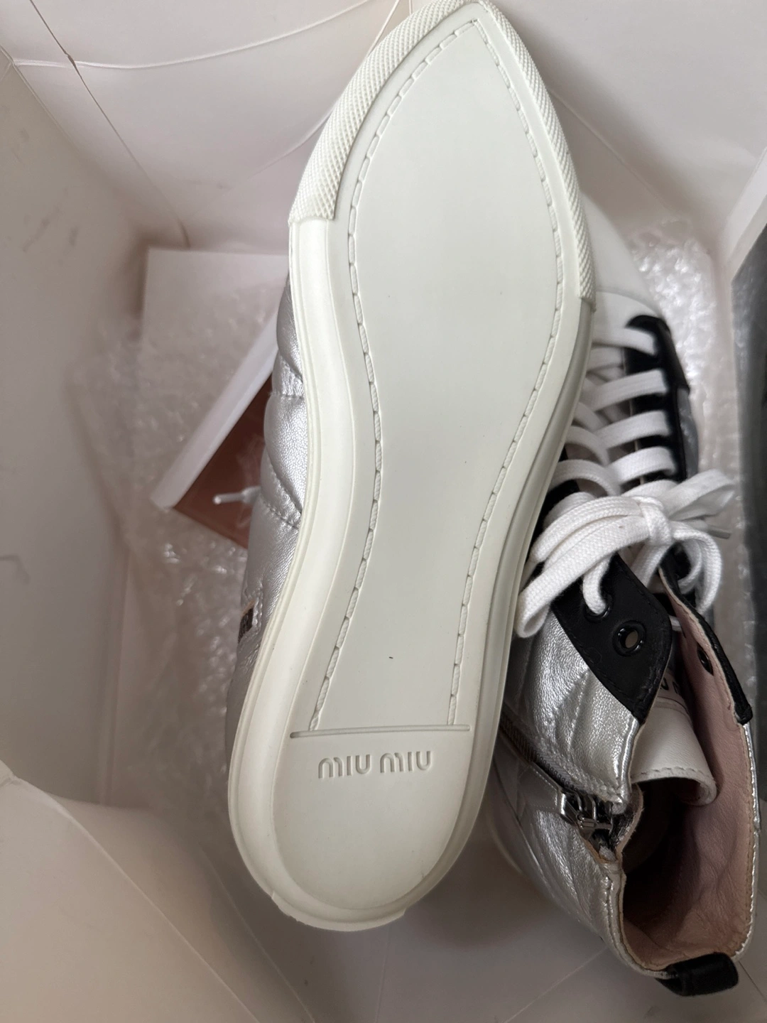 Authentic Brand New Miu Miu Silver Quilted High-Top Sneakers