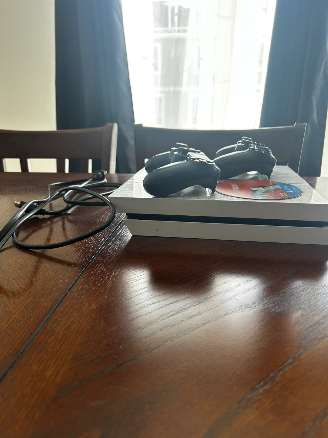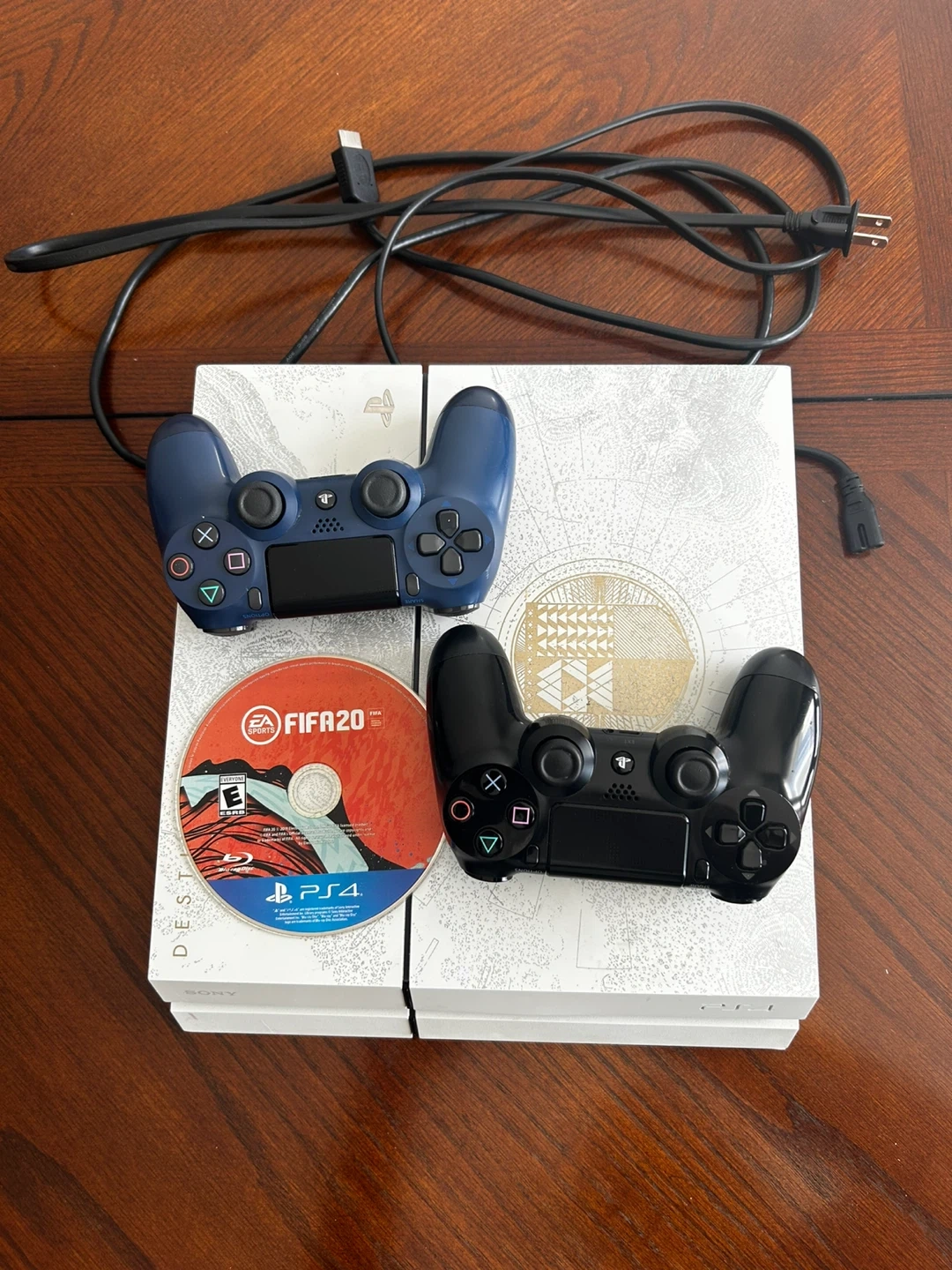 Selling a white Sony PlayStation 4 Pro console with 1TB storage. It comes with two DualShock 4 controllers and the FIFA 20 game disc. This bundle is great for multiplayer gaming sessions or enjoying solo adventures!