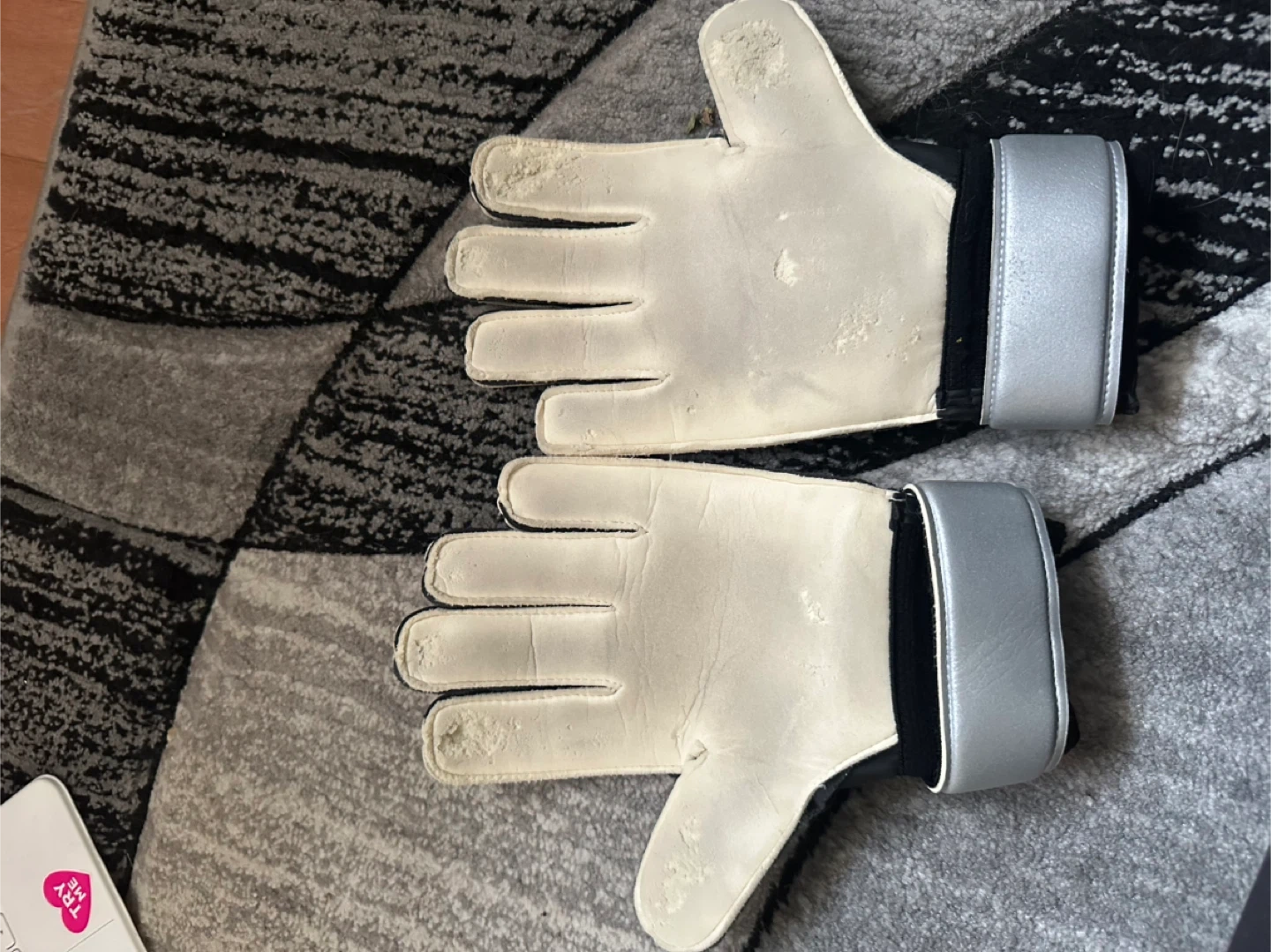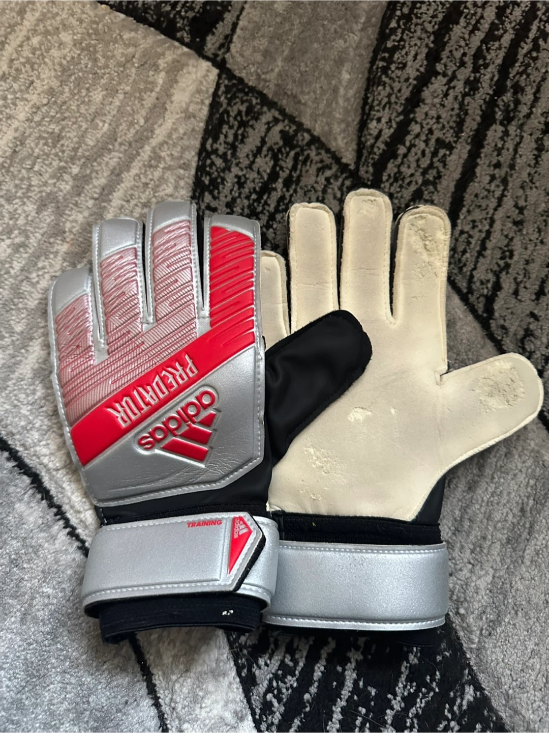 Selling a pair of Nike shin guards and Adidas Predator goalie gloves. The gloves show some wear on the palms, but are still functional. The shin guards are ready for the field!