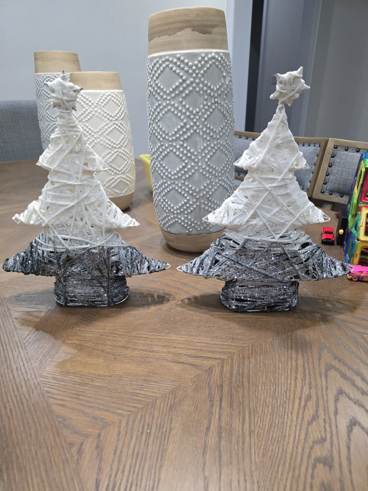 Selling two cute Christmas tree decoration! It has a unique black/grey and white design with glittery accents. Perfect for adding a festive touch to your home this holiday season