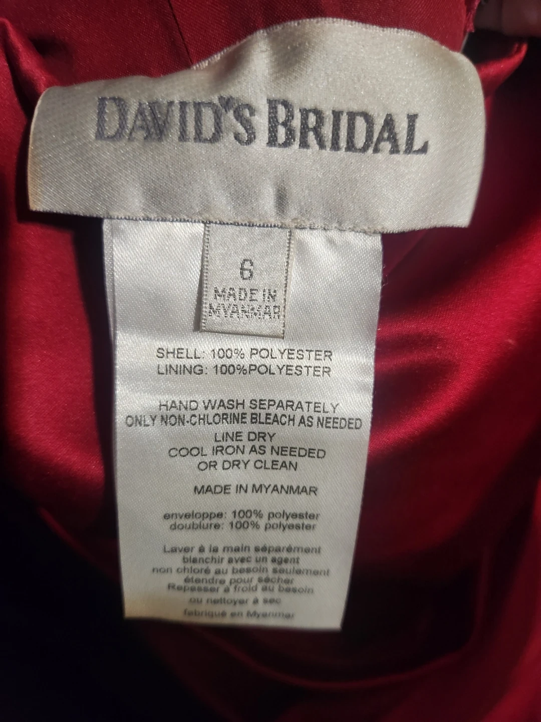 David's Bridal Red Strapless Formal Dress Size 6