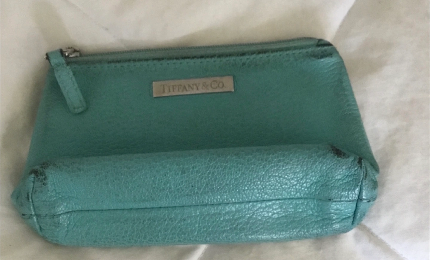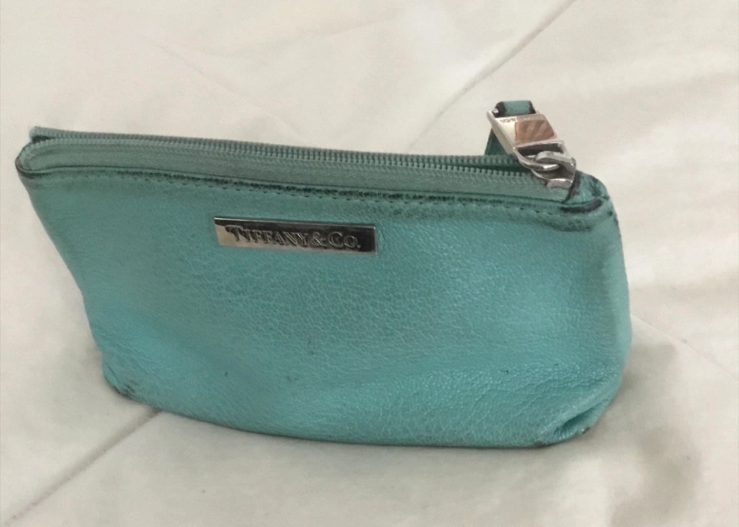 Selling a Tiffany & Co. coin pouch. It's a cute little pouch for your coins or small essentials. It does show some signs of wear, as seen in the photos.