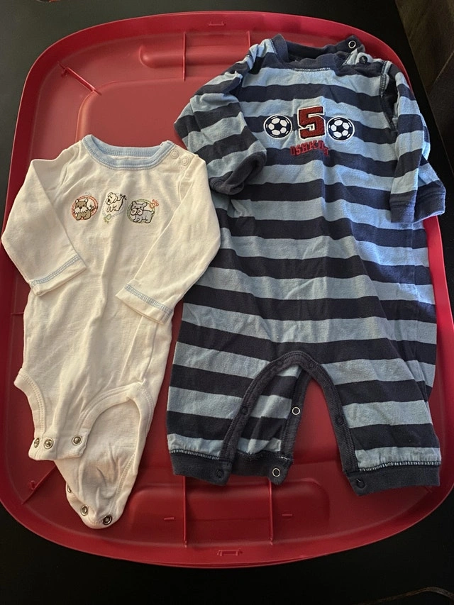These clothes have been well-cared for and are ready for a new home. I'm asking $10 for the set. Romper is 3-6 months, onesie is 3 months. Cash and cashless payments accepted. Curbside pickup only.