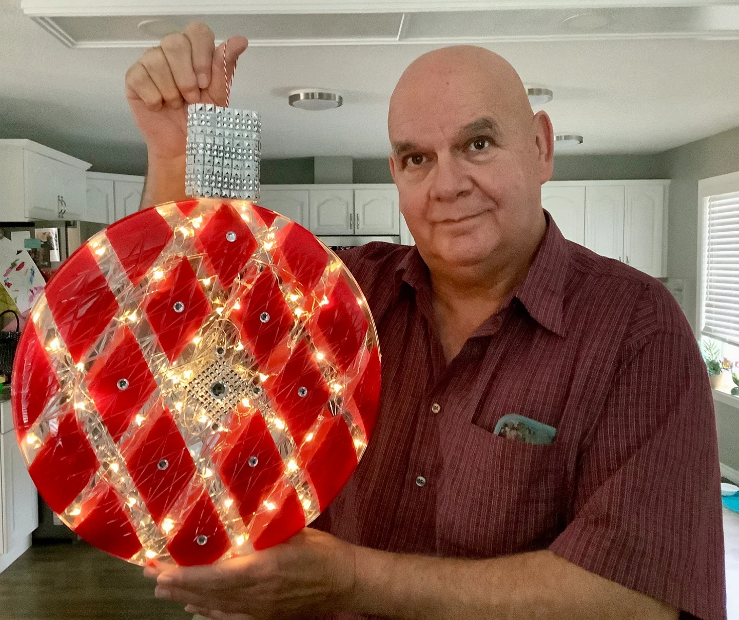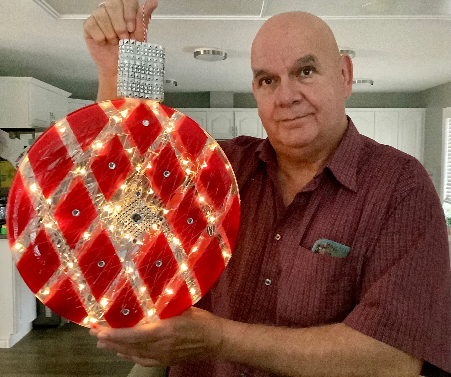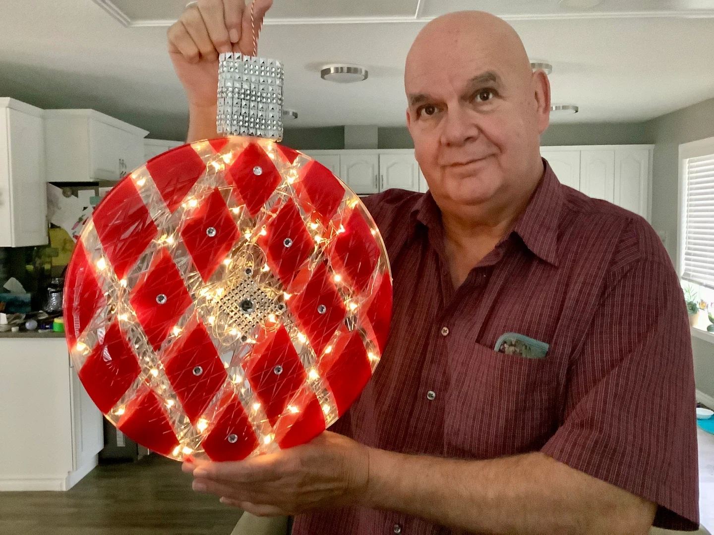 Red Diamond Pattern Lighted Ornament
