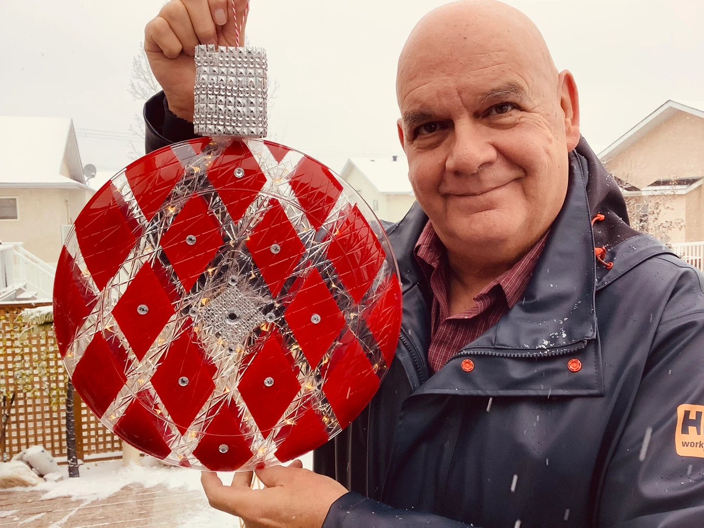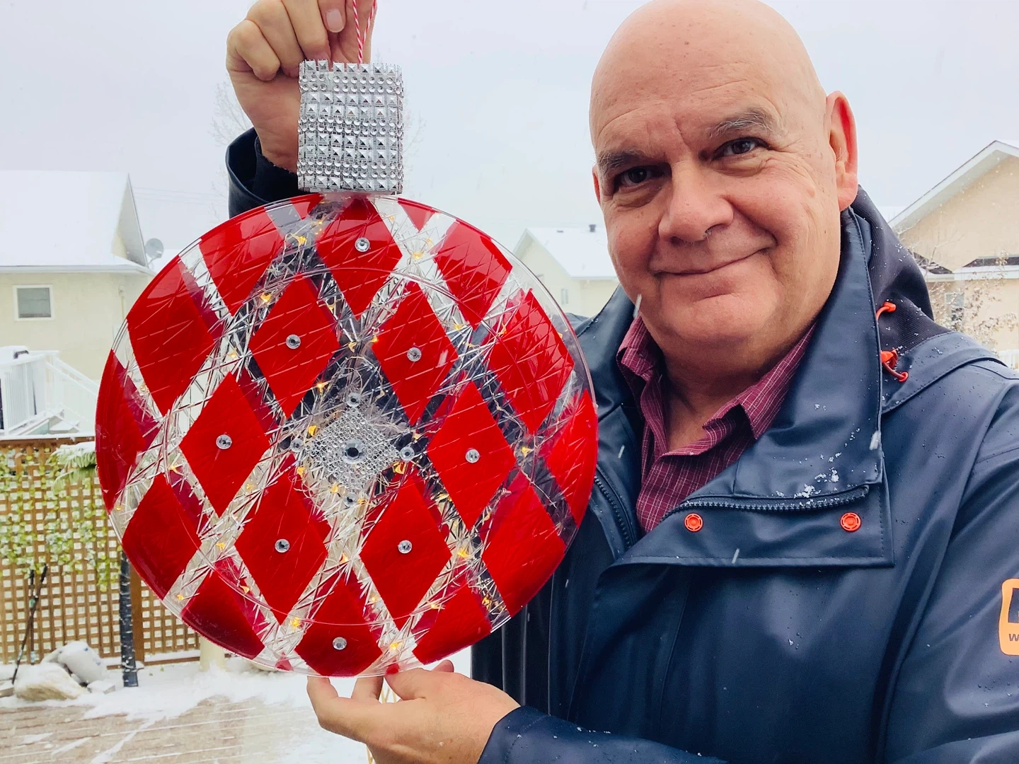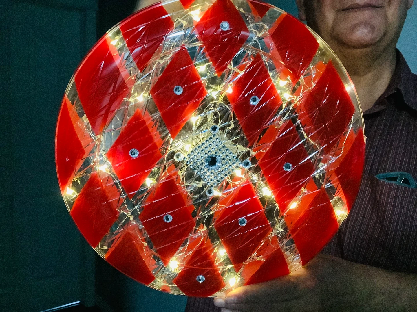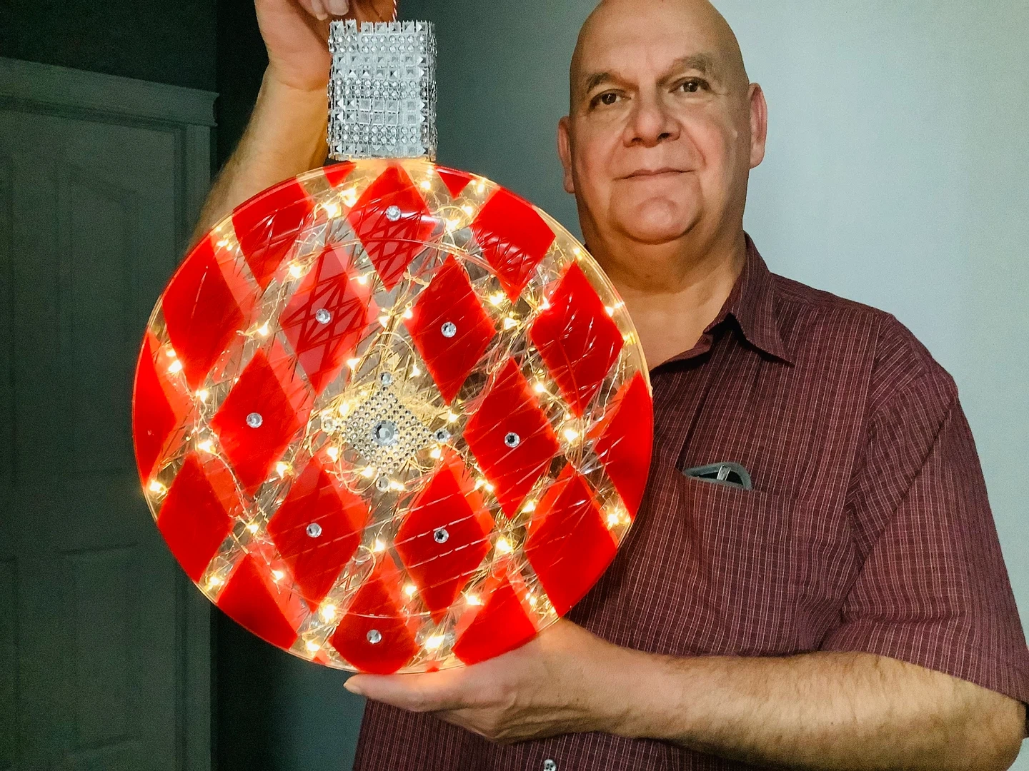Selling a unique lighted ornament with a red diamond pattern! It's in great condition and would make a lovely addition to any room or holiday display. The lights add a warm and inviting glow of twinkling light.