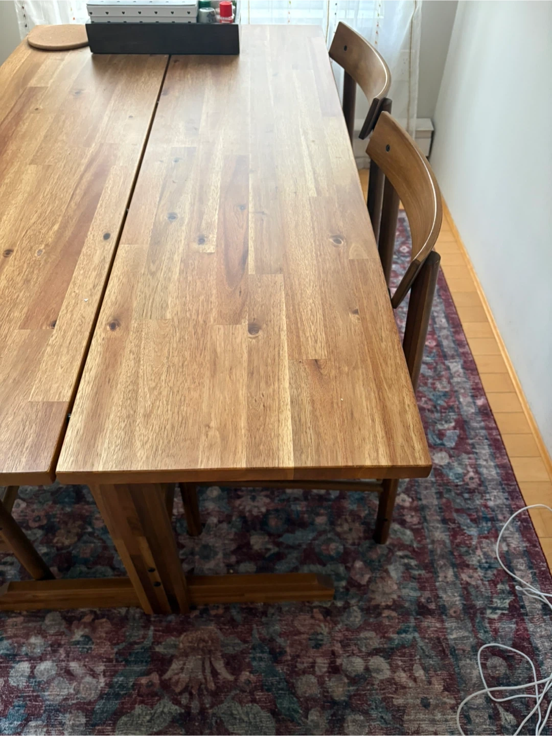 IKEA Nackanas - This dining set features a sturdy wooden table and four chairs with woven black seats. The table measures 140 cm (55 ⅛") in length and 76 cm (29 ⅞") in width, with a height of 75 cm (29 ½"). It's a great addition to any dining space!