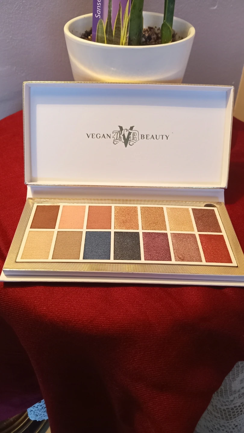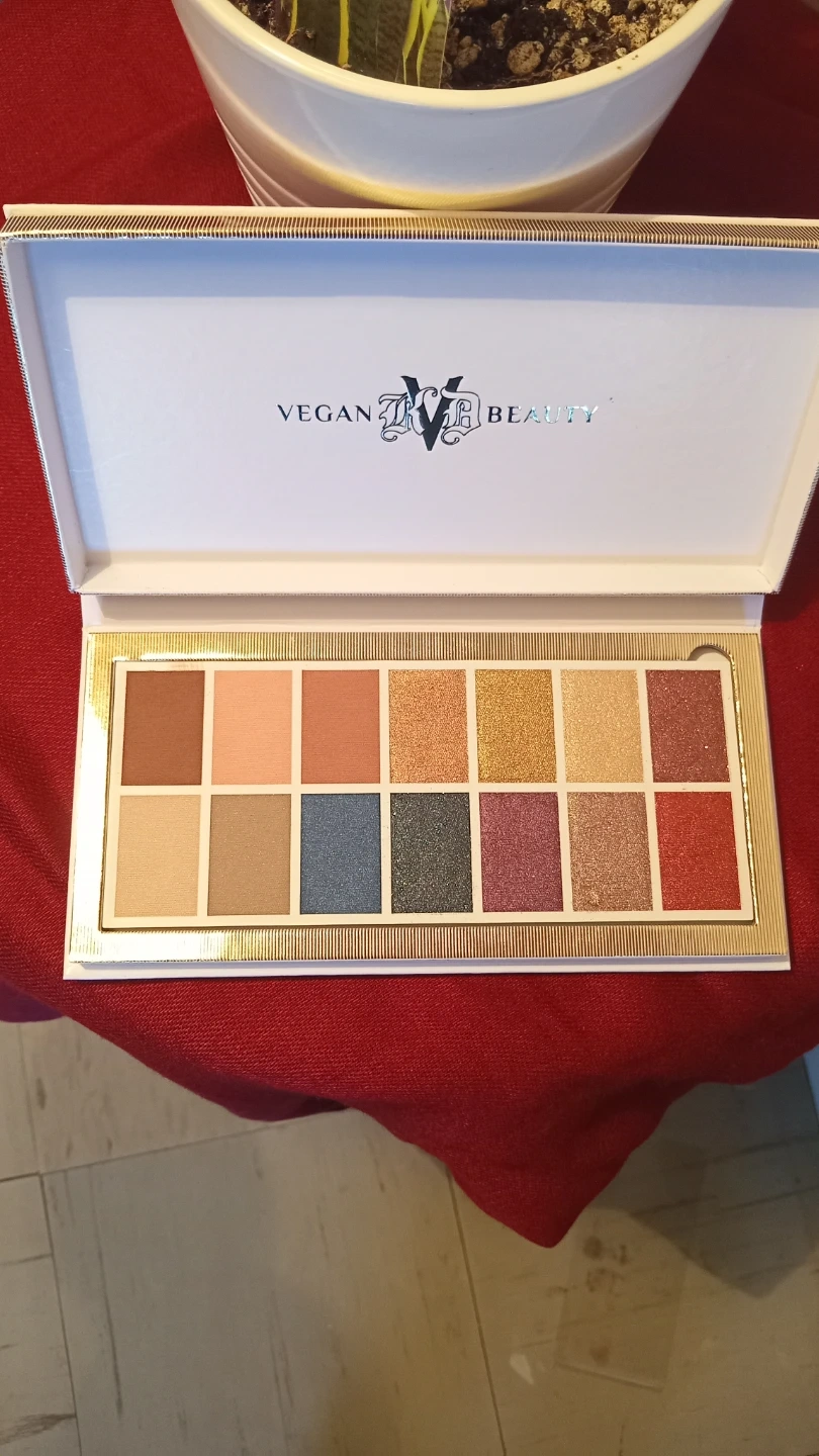 This is the Vegan Beauty Edge of Reality Eyeshadow Palette. It features 14 shades with a mix of matte and shimmer finishes. (From Kat Von D beauty)