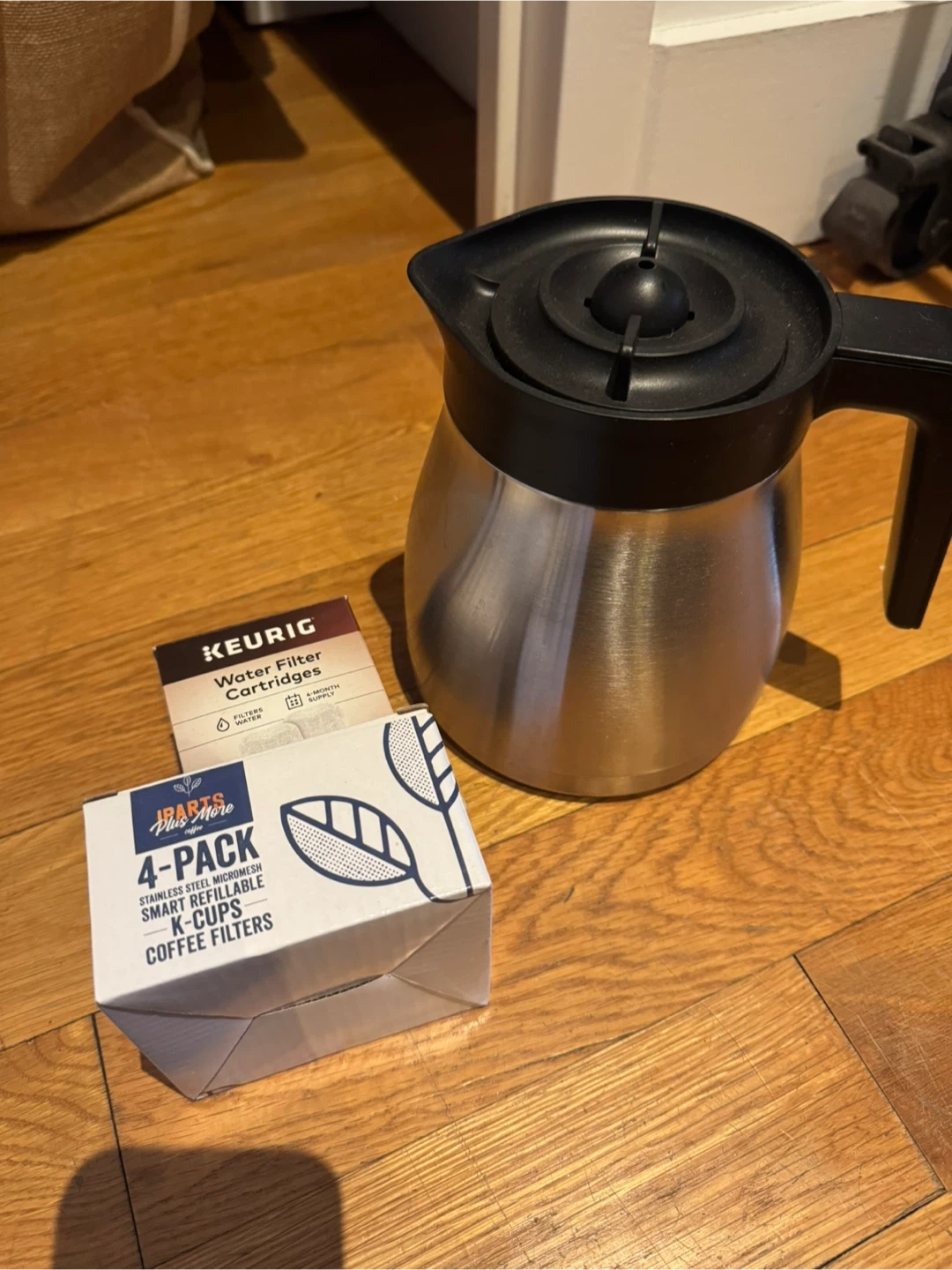 Barely used, freshly cleaned, and in great shape. Comes with a carafe, 4 reusable k-cup filters, and 1 water filter cartridge. Water tank is reversible - can be attached to either side. Sells retail at $190. Would need to pick up - located in Bedstuy, Brooklyn, NYC.