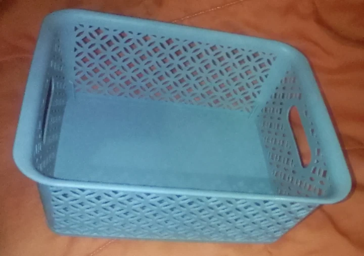 I'm selling a cute gray plastic storage basket! It's perfect for organizing items around the house. It's in great condition and ready to use