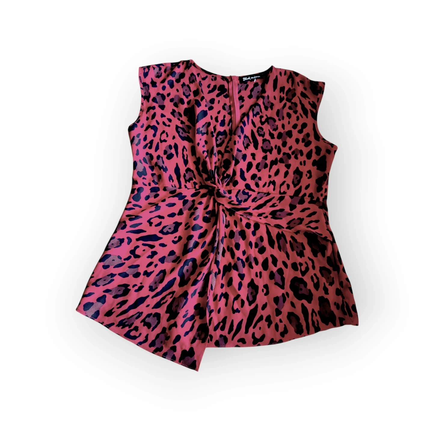 Black Company Red Leopard Print Twist Front Sleeveless Blouse