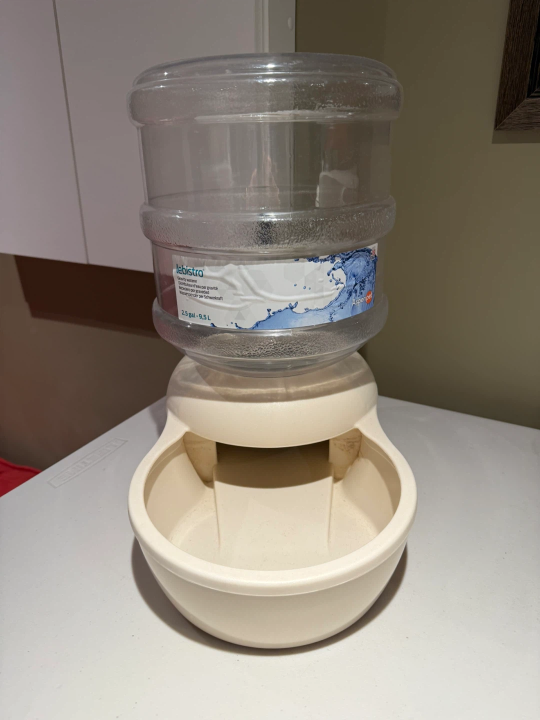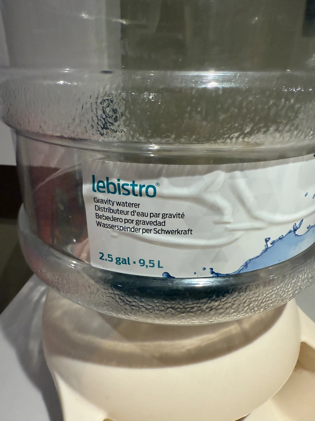 Selling a Lebistro gravity waterer! It holds 2.5 gallons (9.5L) of water. Great for pets!