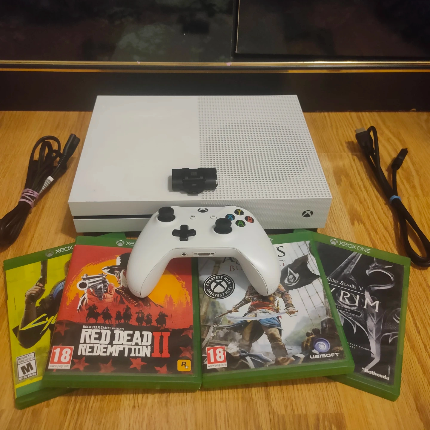 Selling a white Xbox One S 1TB console in excellent, clean condition. It runs perfectly and comes with everything you need to start playing immediately, including some of the best games from the last generation.