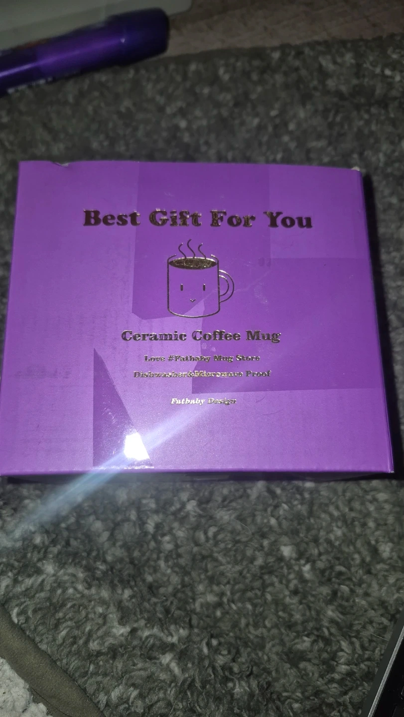 This is a ceramic coffee mug with a fun rainbow design. It says 'Making the World a Better Place' and 'since 1986'. The mug comes in a purple box that says 'Best Gift For You'. It's dishwasher and microwave safe.