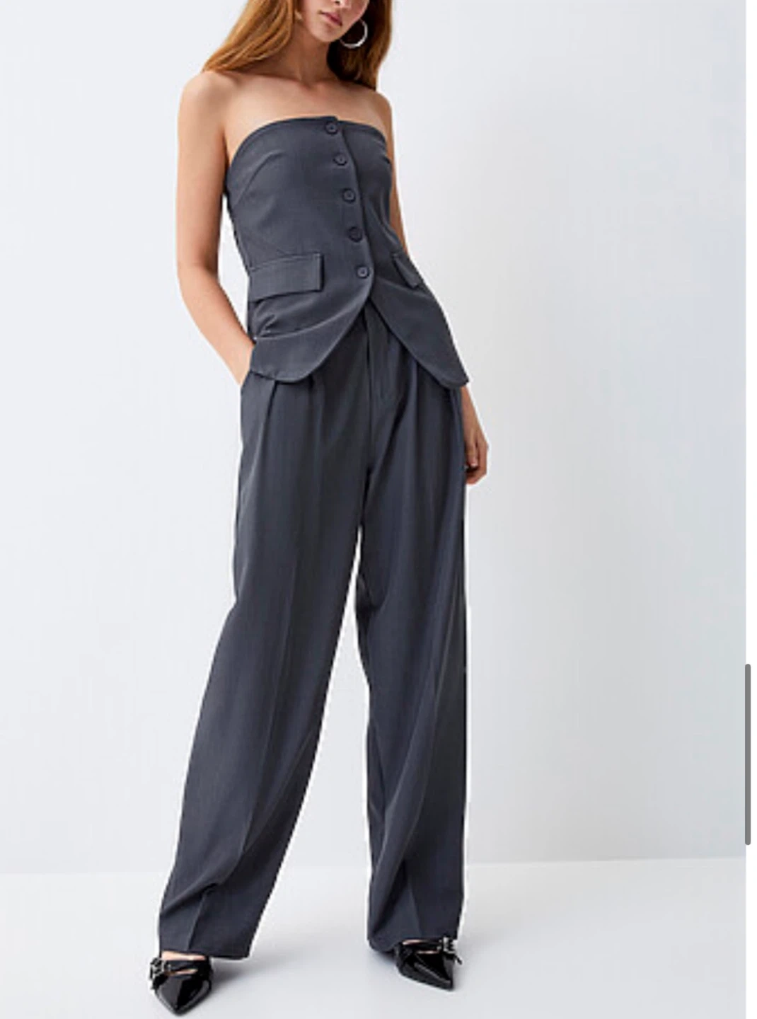 Simons grey pleated wide leg pant