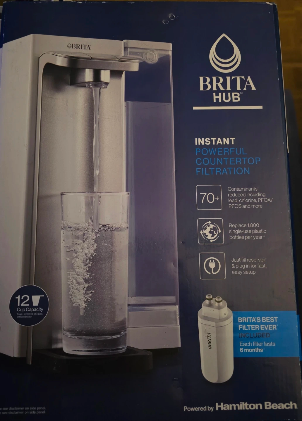 I'm selling a Brita Hub instant powerful countertop filtration system! It can reduce 70+ contaminants including lead, chlorine, PFOA/PFOS and more. It can replace 1,800 single-use plastic bottles per year. Just fill the reservoir and plug it in for fast, easy setup. It has a 12 cup capacity!