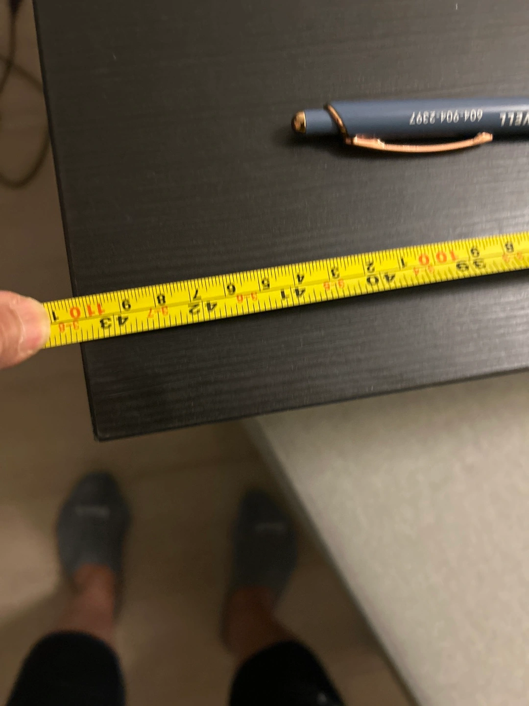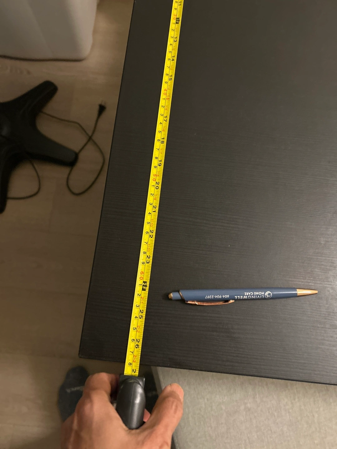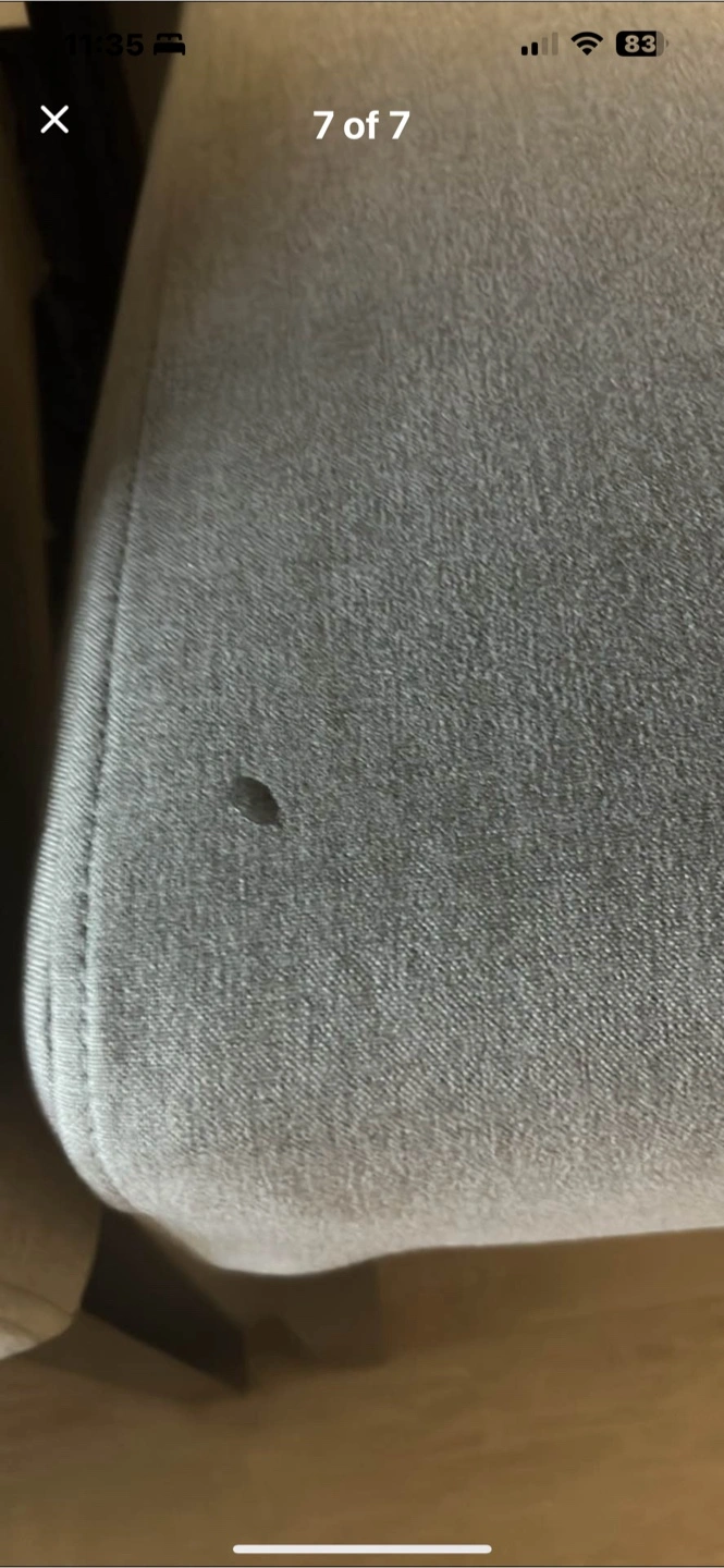 A black dining table with 4 light grey upholstered chairs. Tabletop is black wood. Chairs have wooden legs.
