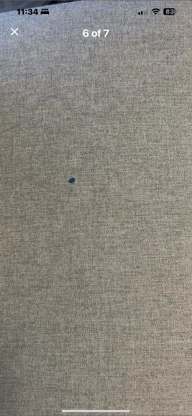 A black dining table with 4 light grey upholstered chairs. Tabletop is black wood. Chairs have wooden legs.