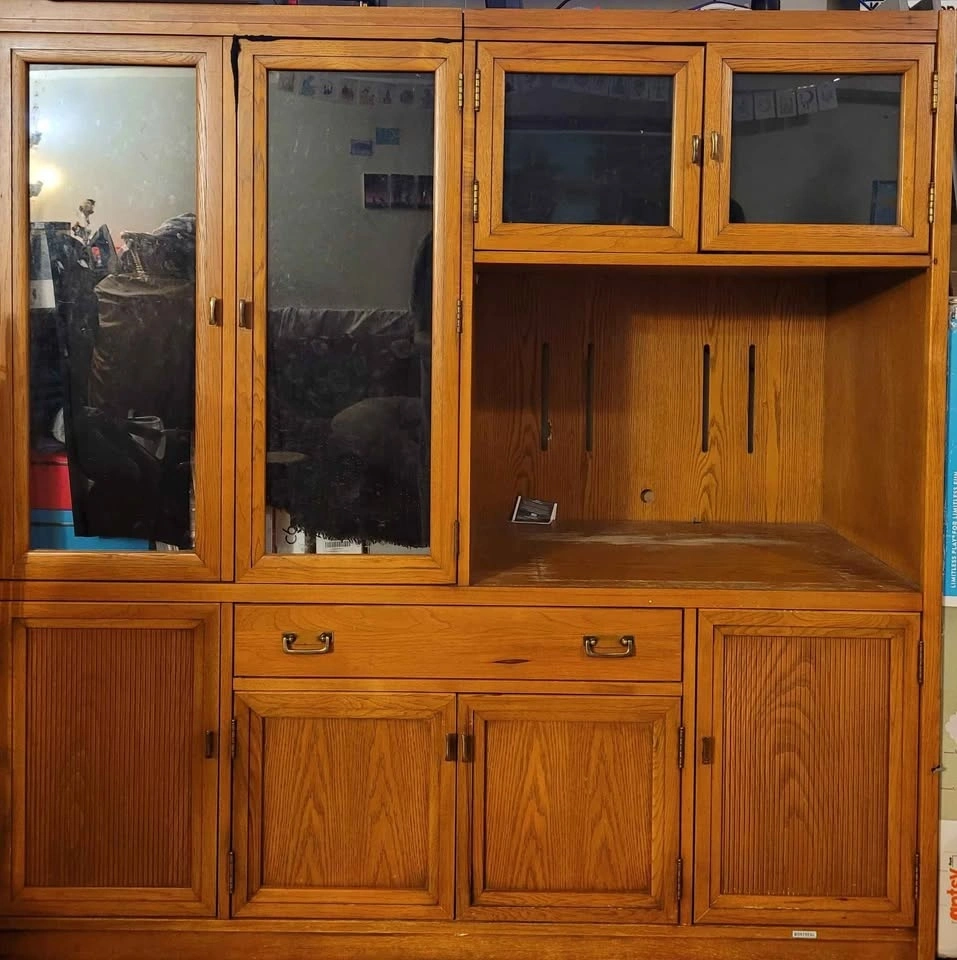 Antique tiger wood Glass Display Cabinet