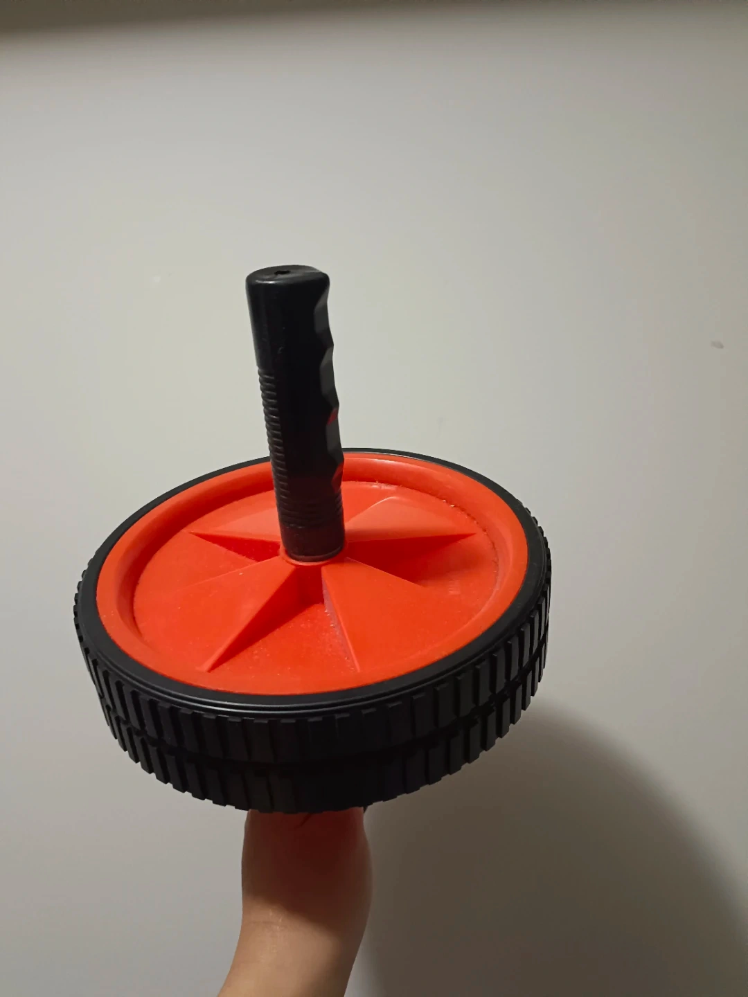 This ab roller wheel features a durable black ribbed wheel for stability and grip. It has comfortable black handles for a secure hold. Suitable for core workouts at home or in the gym!