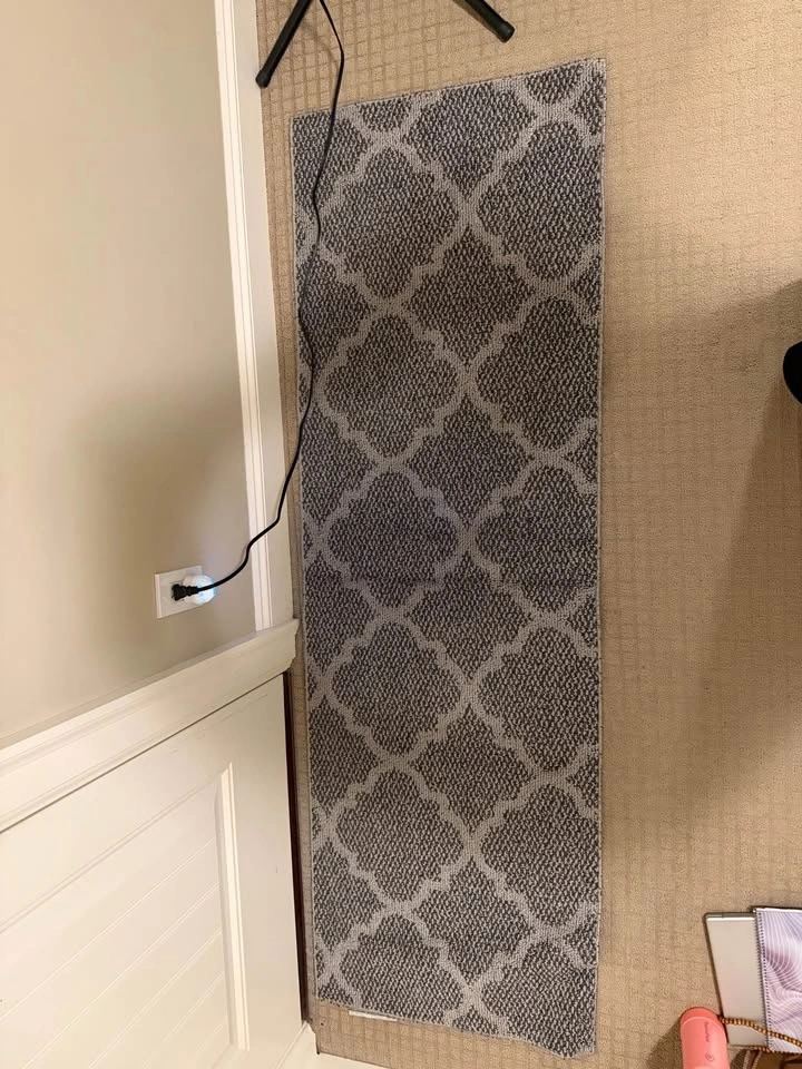 White rug from Walmart, used for 8-9 months, vacuumed weekly. Selling for $40. Can be washed with a rug washer. Black mat from Costco for $10. IKEA mirror for $50, originally $70+tax. In like-new condition, no broken parts or cracks. Moving out sale, need to be gone by end of Feb.